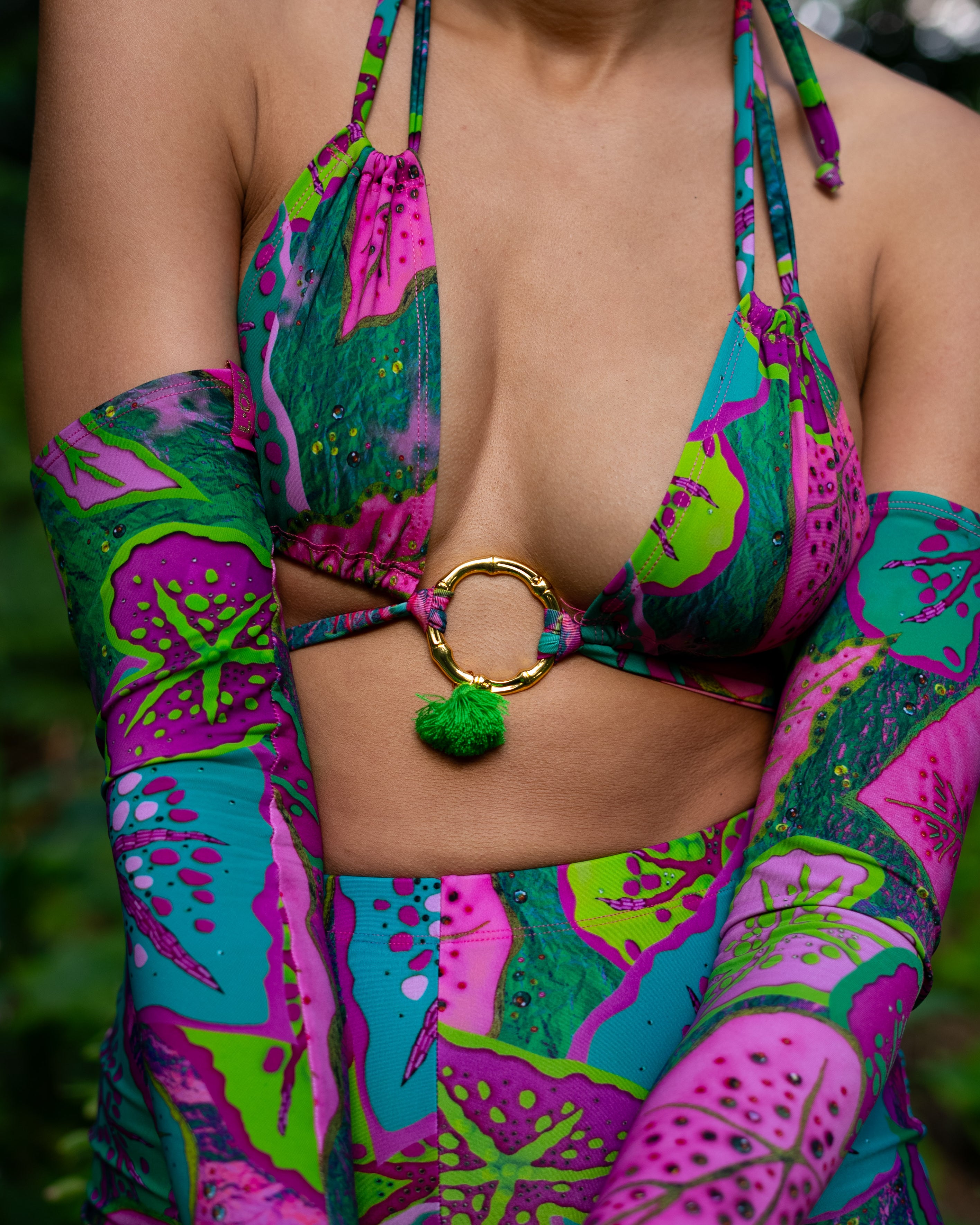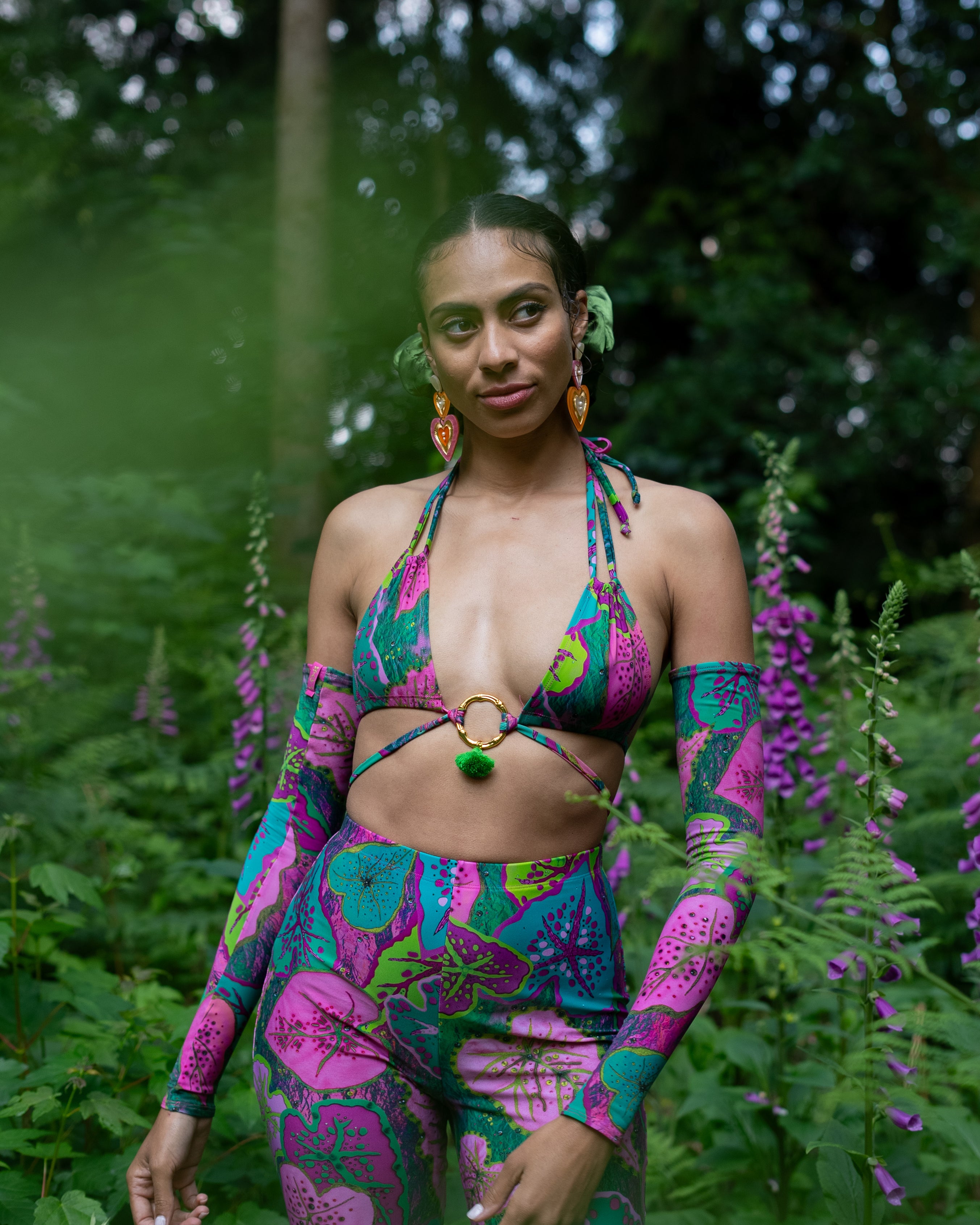Our commitment to exceptional quality shines through in every garment. The state-of-the-art printers we use capture the lush pink and green tones with unparalleled richness, preserving the exquisite details of every thread and bead. This level of detail and craftsmanship is a testament to our dedication to providing fashion that stands apart from high street brands.