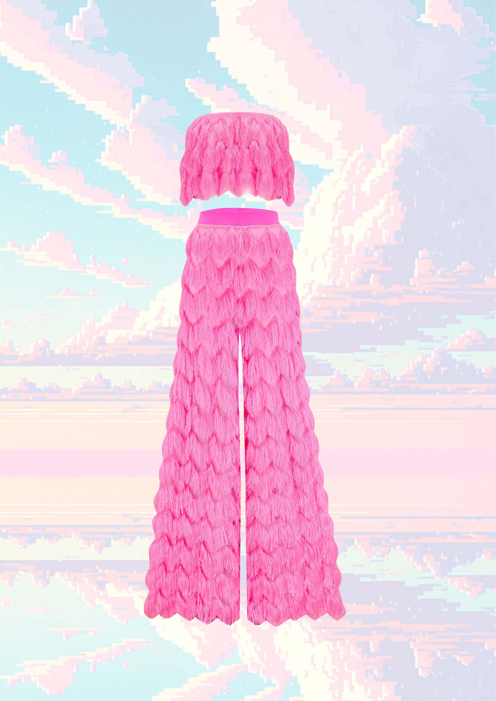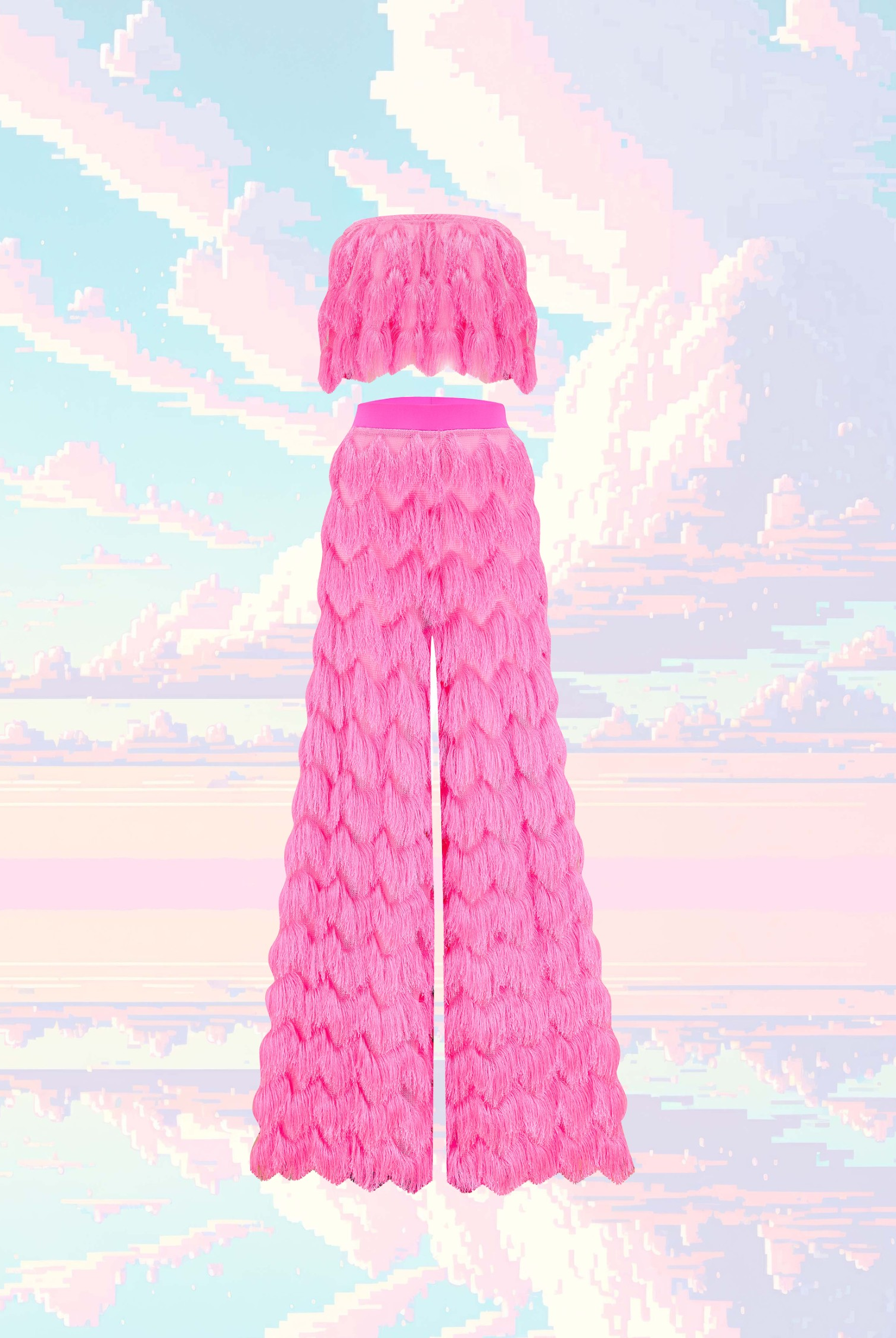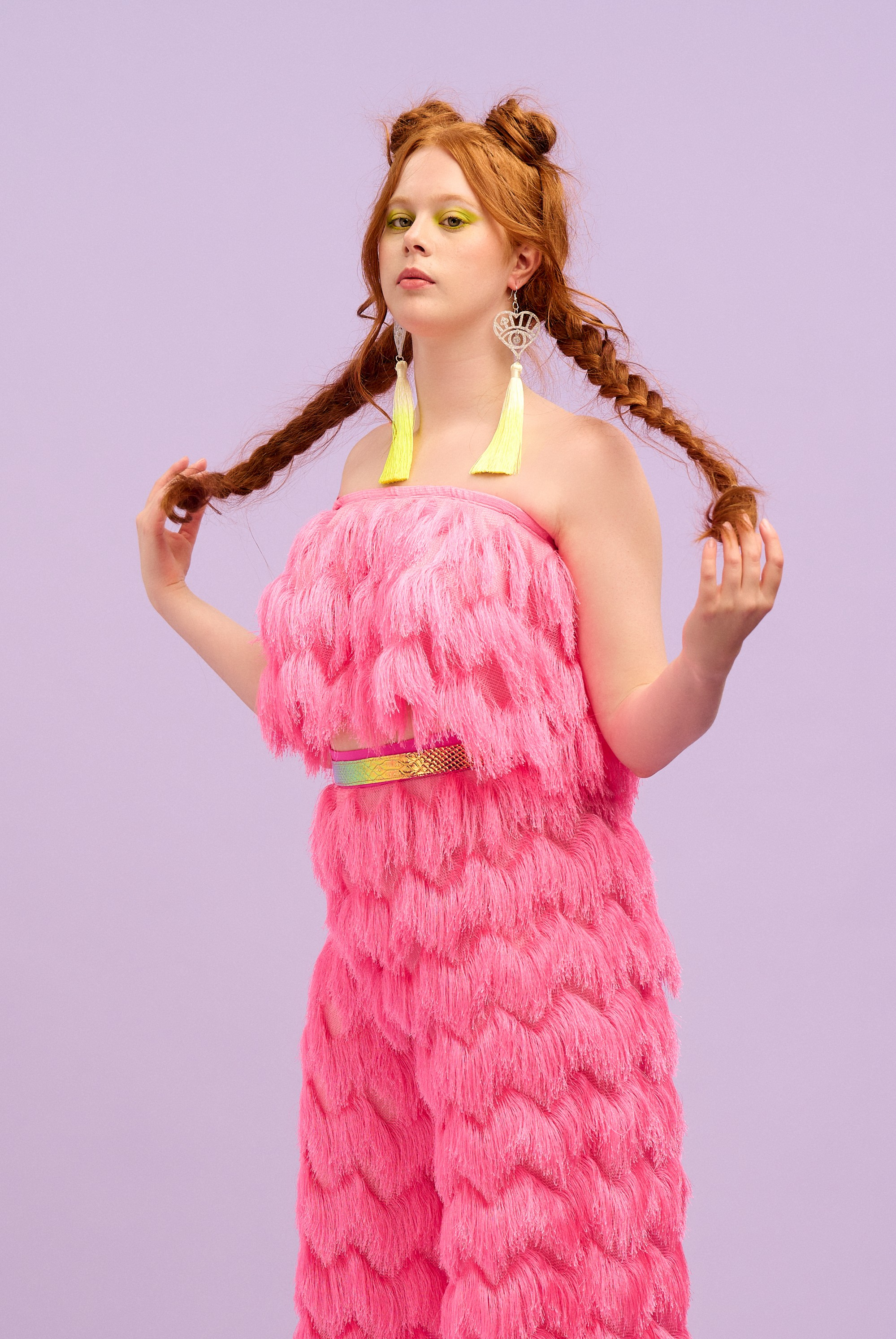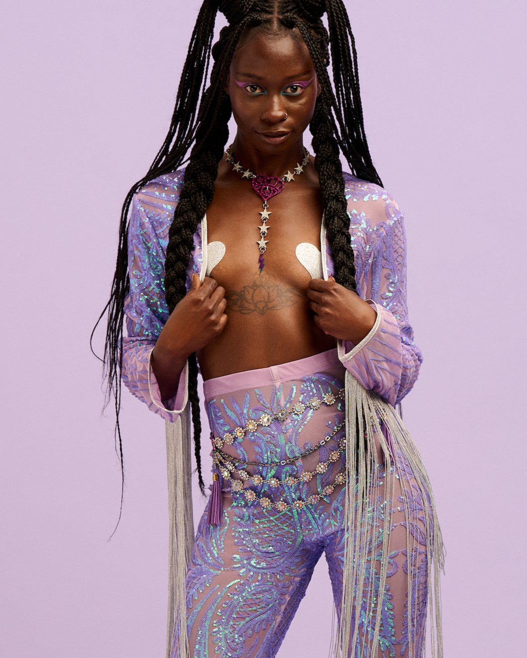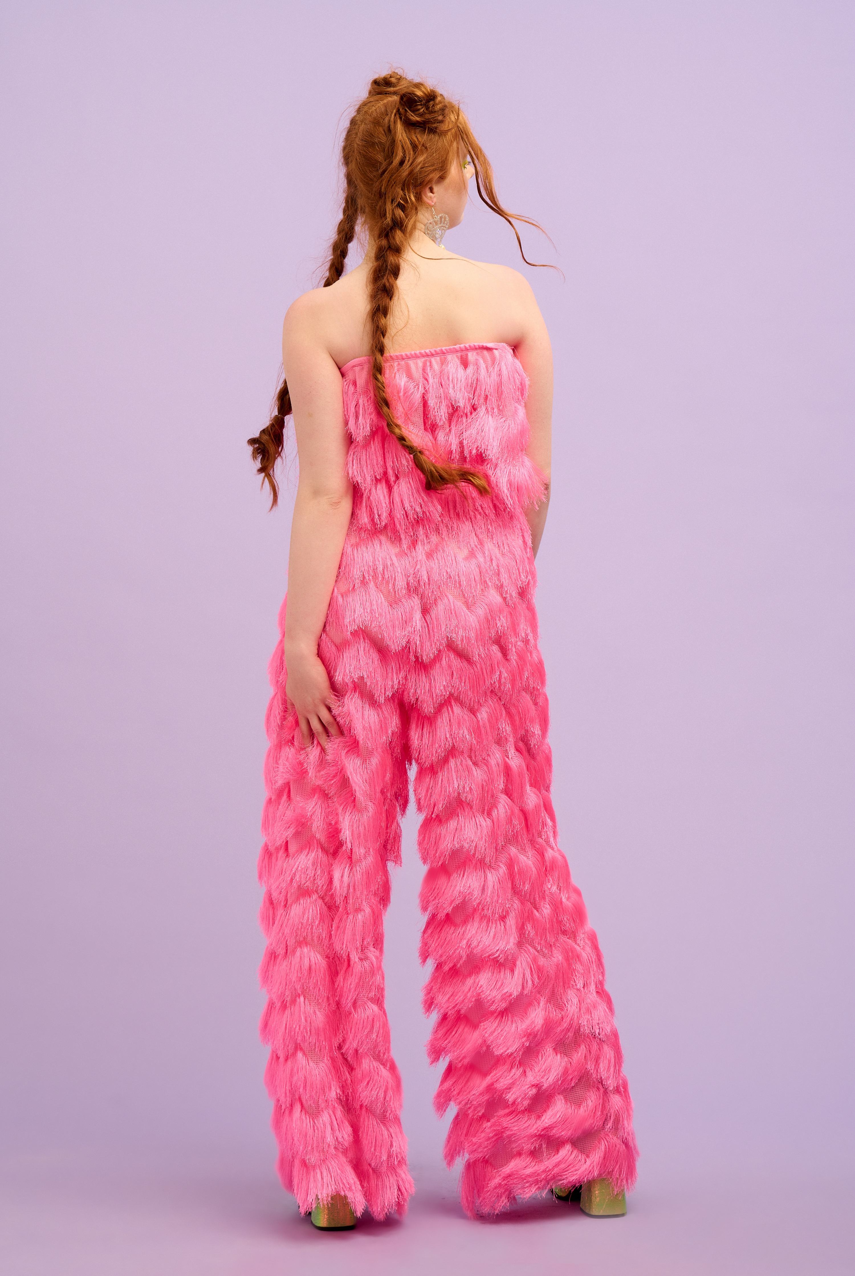 Nothing says party like a fringed arm!! Add a touch of playful flair to your festival outfit with our fringe pieces. From colourful fringed sleeves on our bodysuits and tops, to our shimmy-worthy Dallas trousers, these statement pieces are perfect for adding movement and texture to any outfit. The neon fringes all boldly glow under UV blacklight, and many of our fringed pieces are customisable so that you can choose your own fringe colour when we make your order! Explore our range of colours and styles to find the perfect fringe piece to express your individuality.