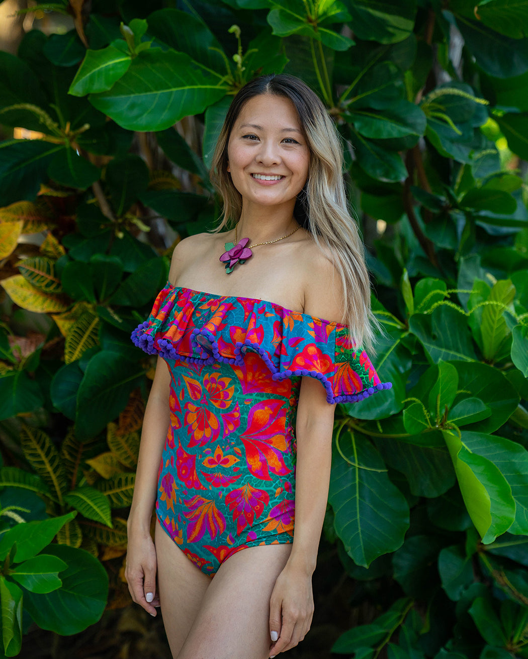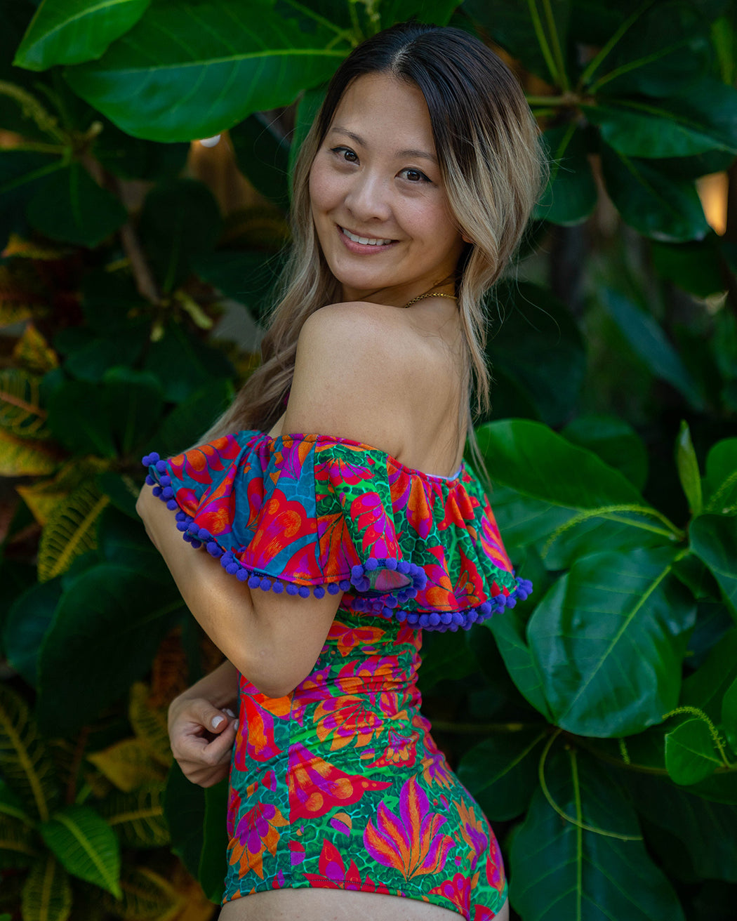 Who doesn't love a pom?? Make a statement with our fun and festive pom pom collection. From off the shoulder bardot cuts, to pom pom lined arms and legs, these whimsical but cute accents are sure to add a pop of colour and fun vibe to any look. Many of our pom pom pieces are customisable so that you can choose your own pom pom colour when we make your order! It’s pom pom party time babes!