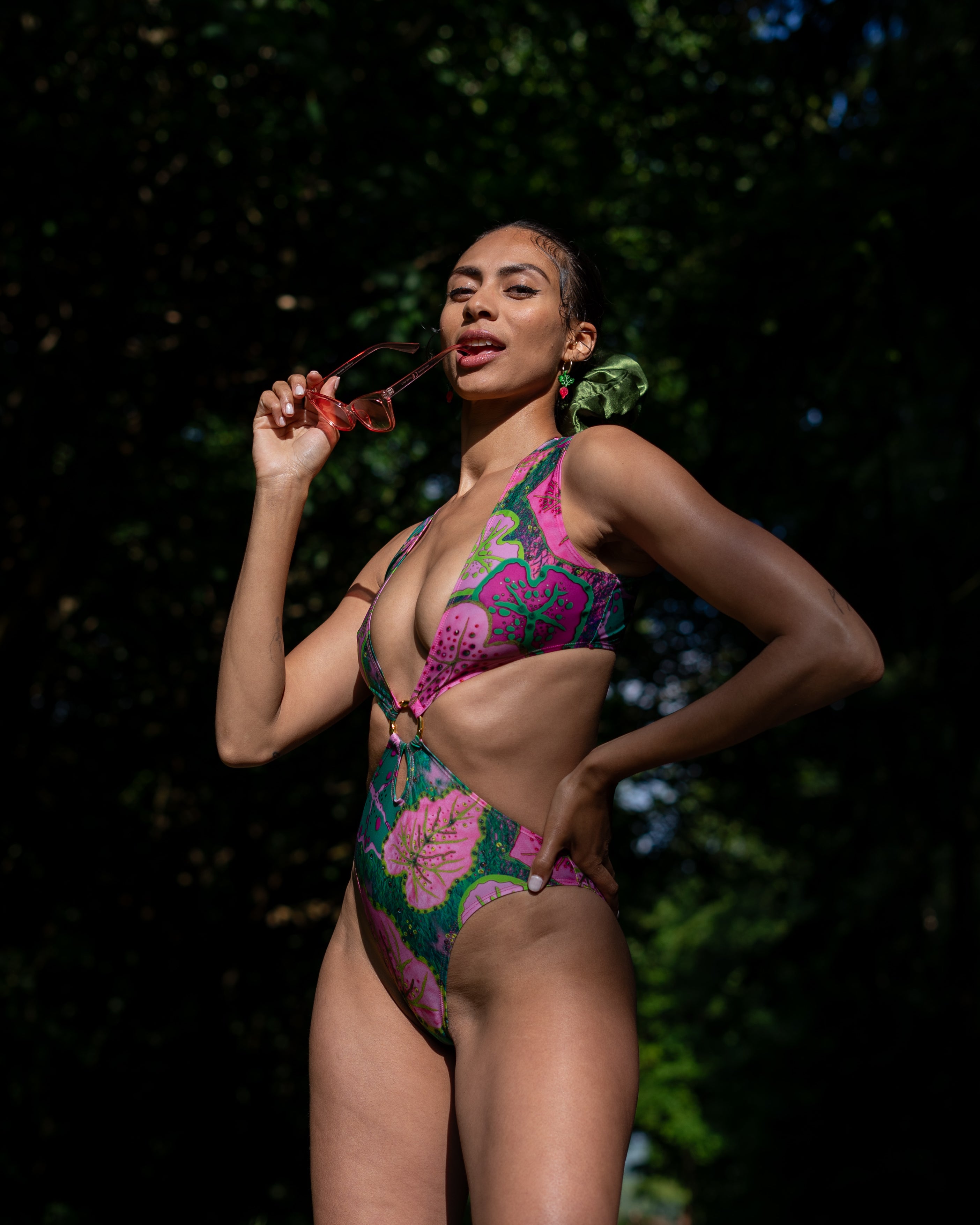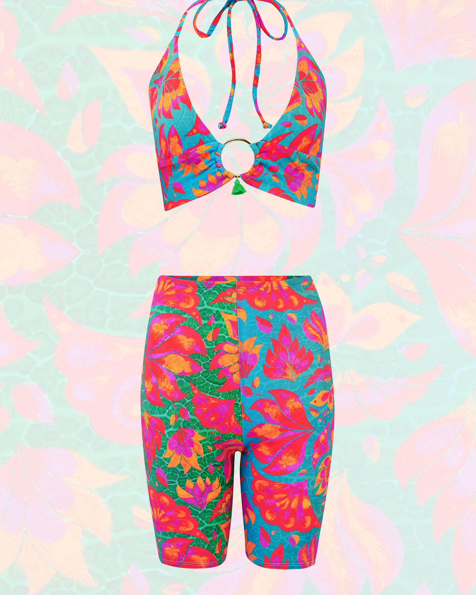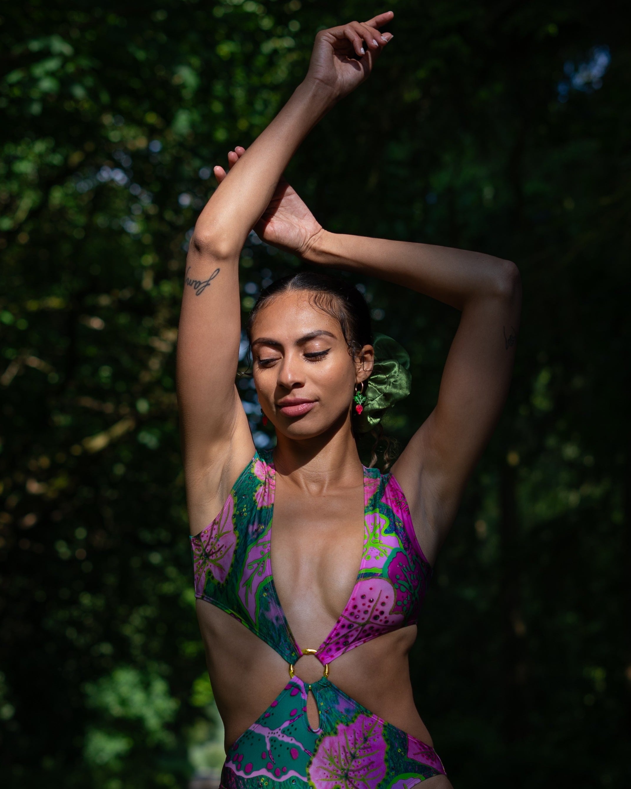 After spending years on the dancefloors in Berlin, Louise was inspired by the shapes and styles that she saw and it influenced her style and designs. L•O•M’s rave pieces might not feature the dark tones classically seen on the best dancefloors in the world, but you will ignite the dance floor and make a statement with these unique, colourful gems. Designed for the fearless and the free-spirited, our lineup features bold colours, intricate prints, and edgy silhouettes that scream individuality. With fringed sleeves and colourful harnesses, unleash your inner party icon and dance the night away in style with L•O•M.