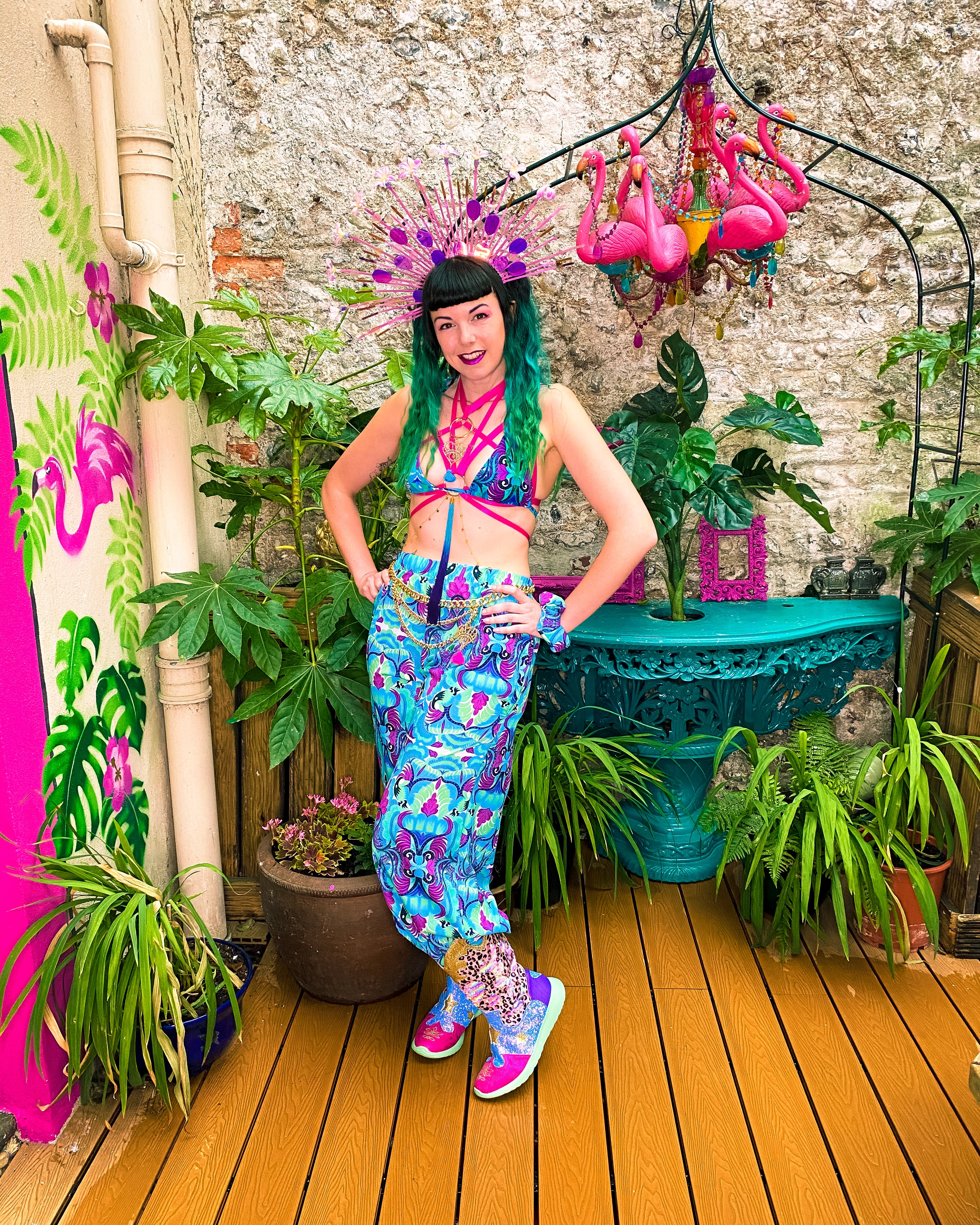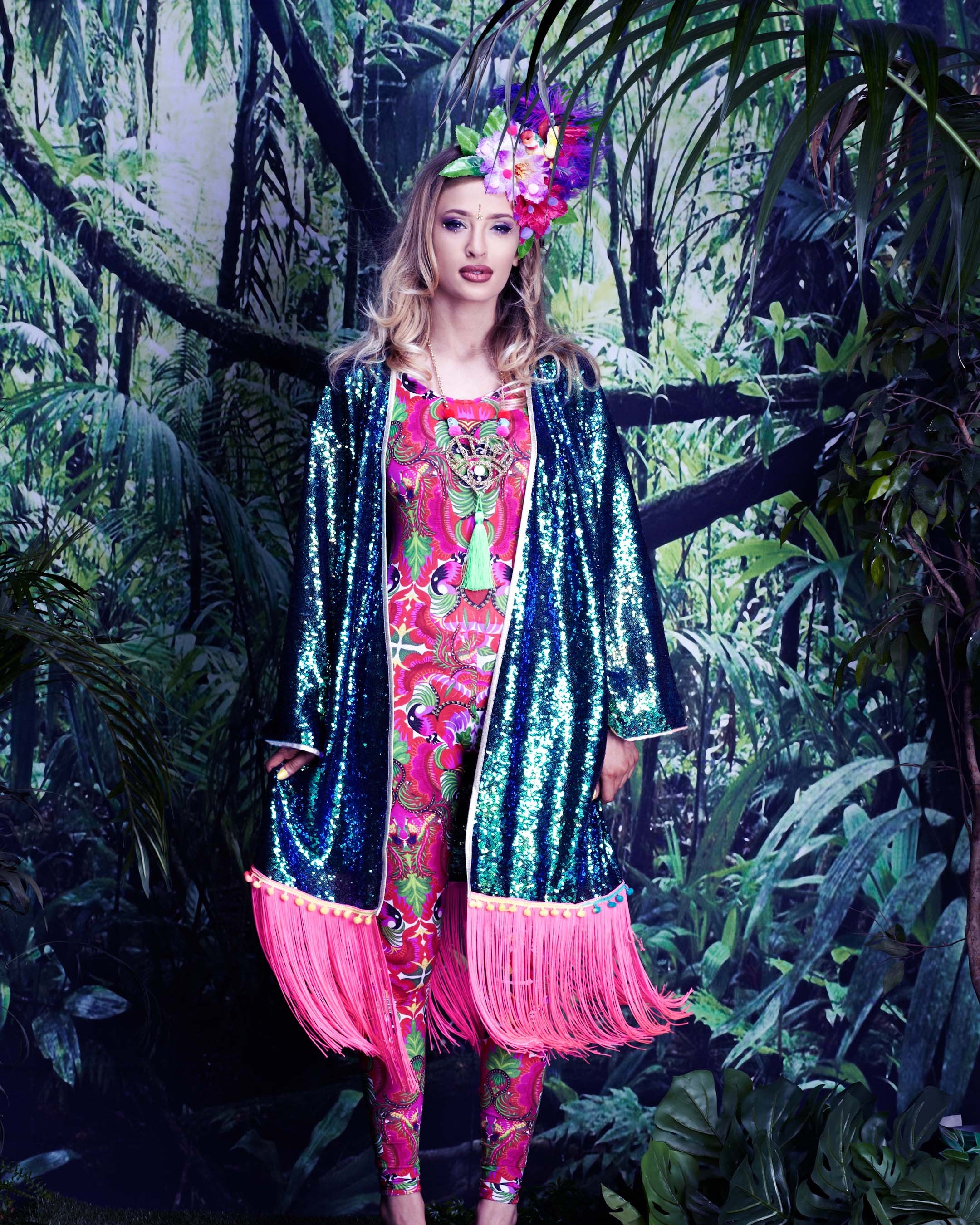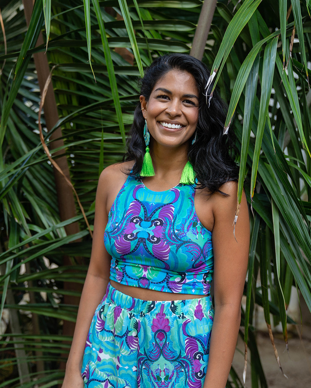 What sets Tribal Tales apart is its precision—crafted with symmetry lines designed to minimise fabric waste and ensure mirrored patterns on every piece, from bodysuits to accessories.