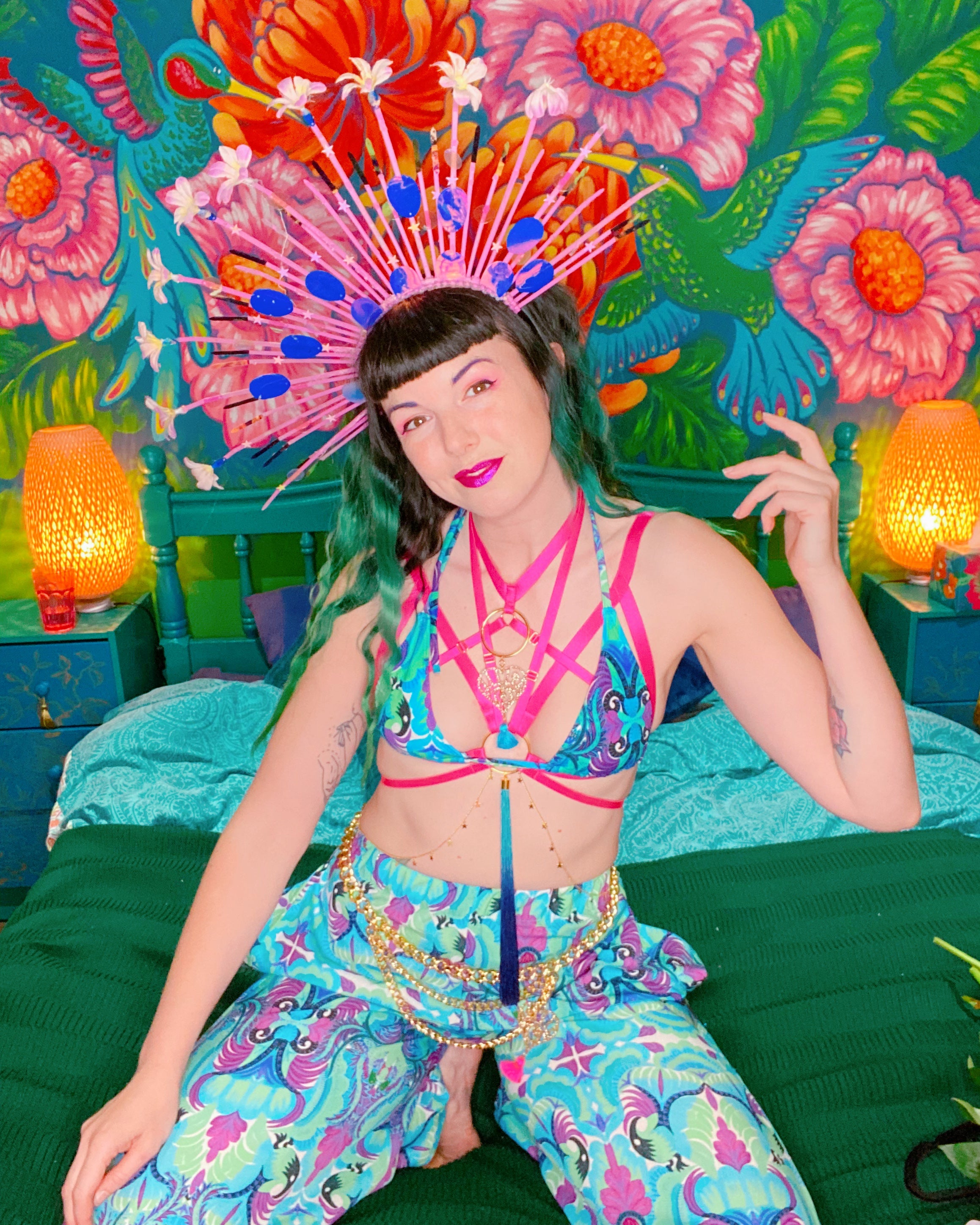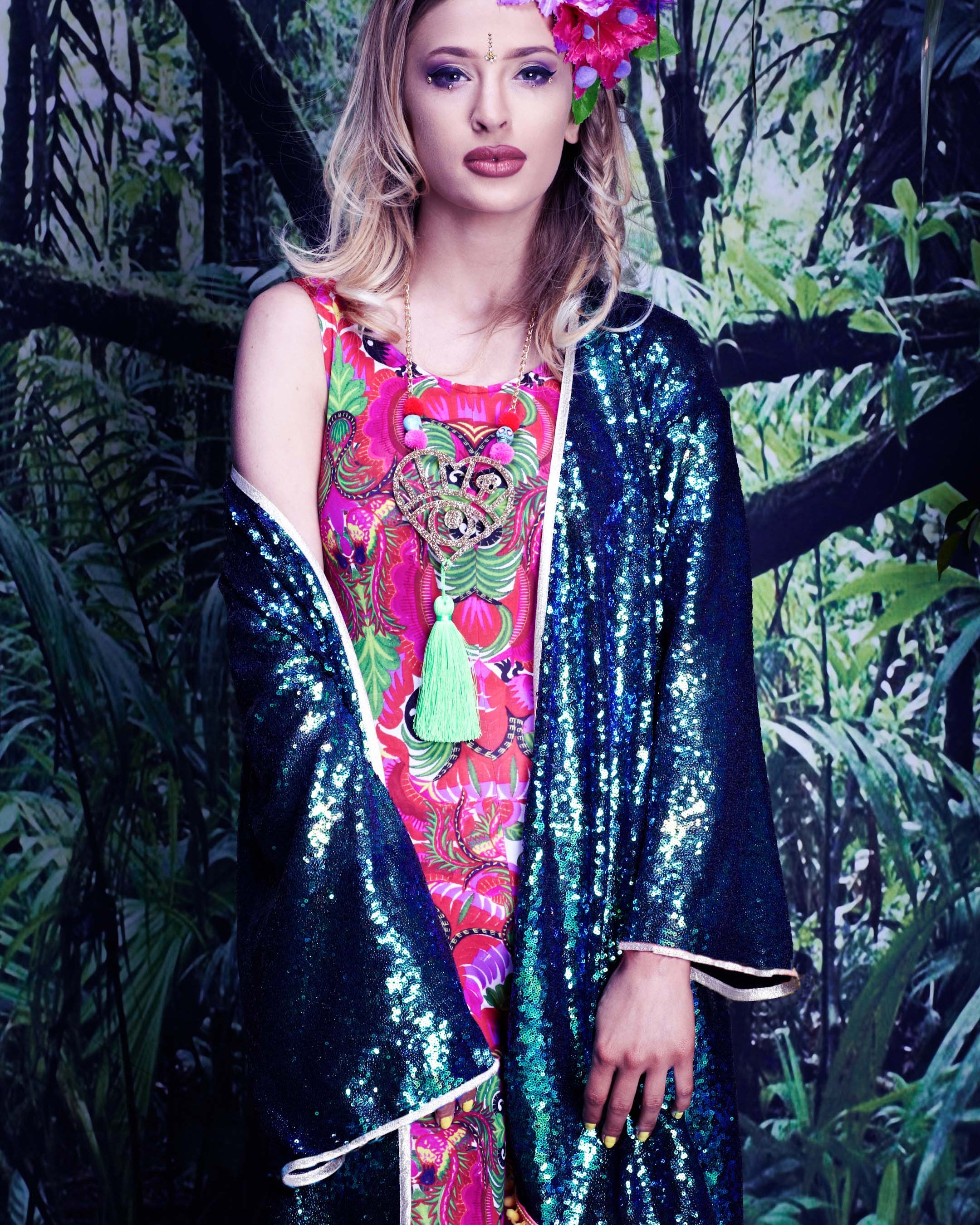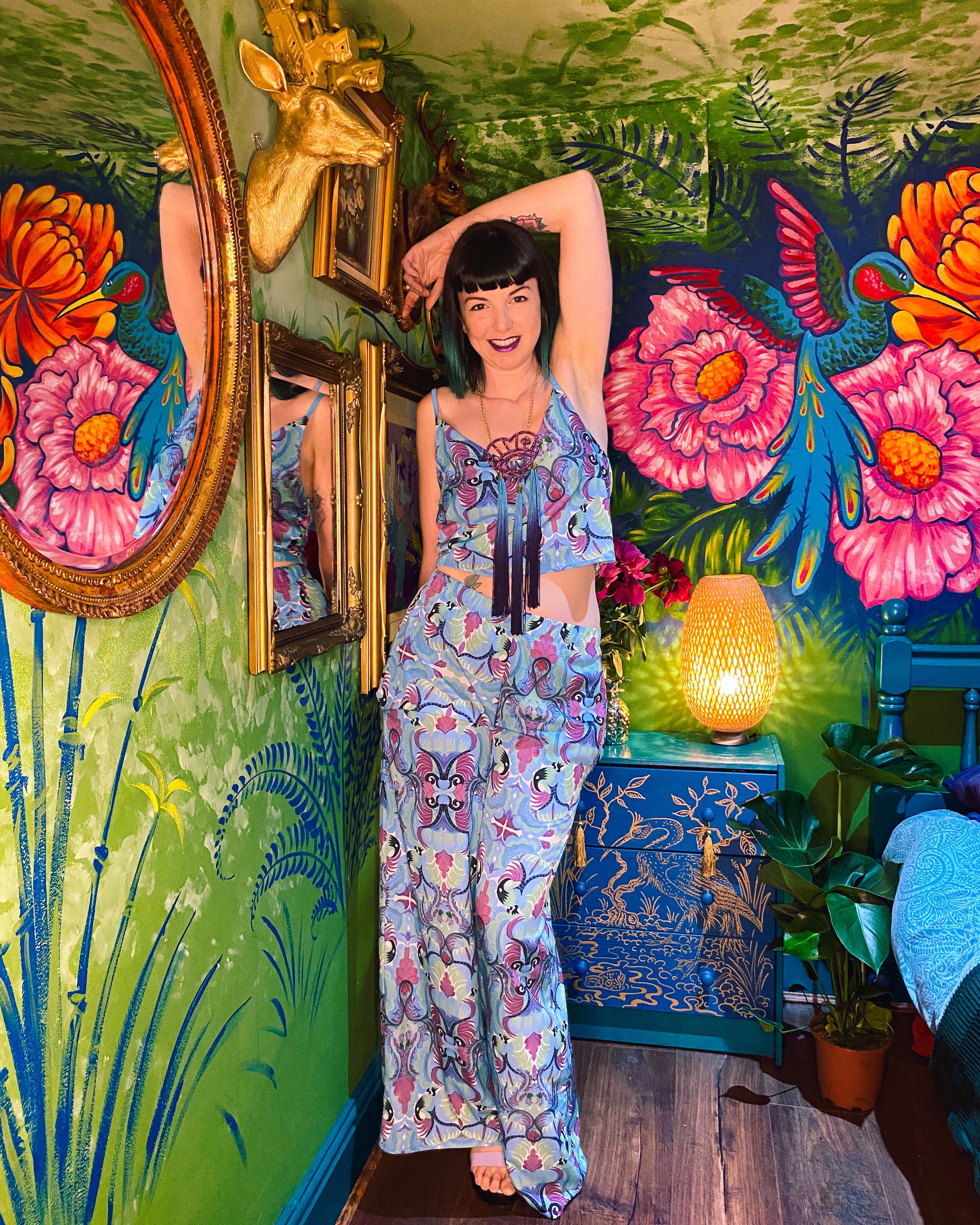 What sets Tribal Tales apart is its precision—crafted with symmetry lines designed to minimise fabric waste and ensure mirrored patterns on every piece, from bodysuits to accessories.