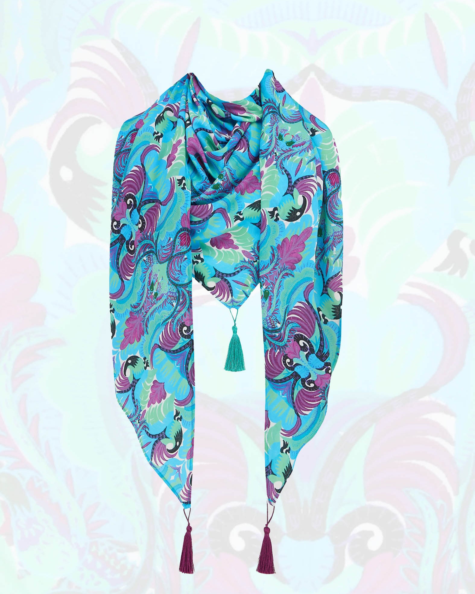 Tribal Tales was born from Louise’s travels to the Northern Hill Tribes of Southeast Asia. This design evolved from the same creative process as Folklorico, where fabrics collected during her journey were photographed, scanned, and reimagined to create a mesmerising, symmetrical pattern.