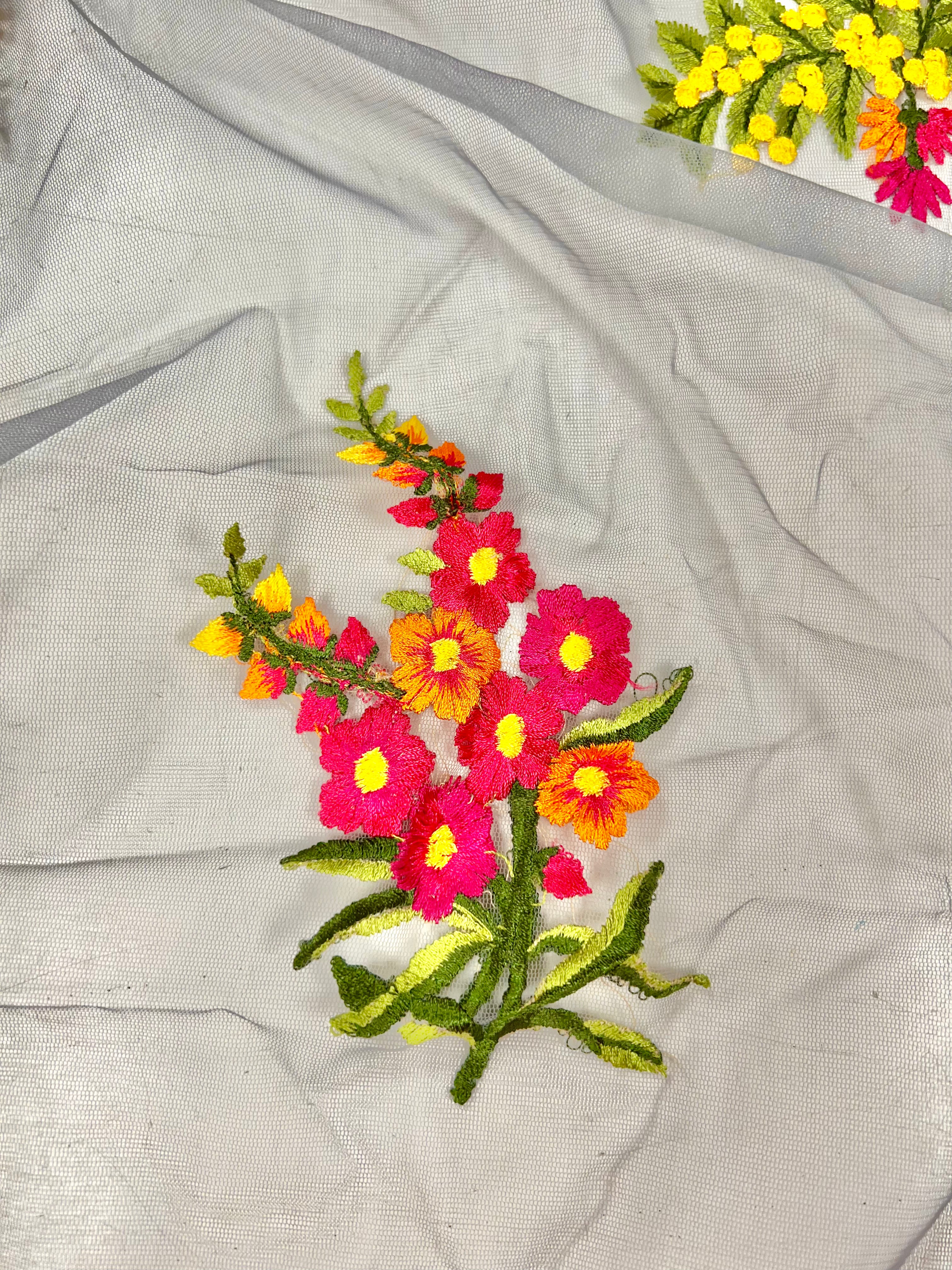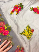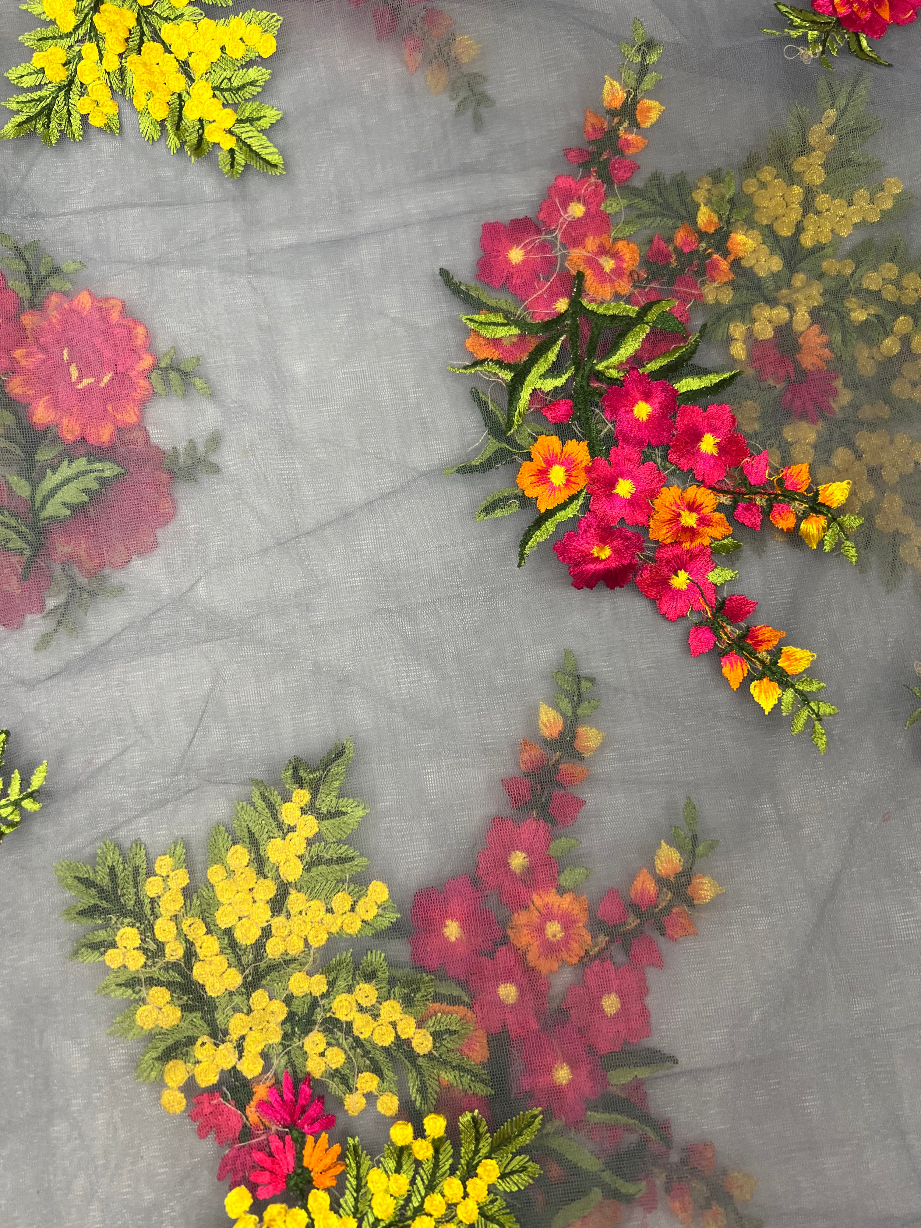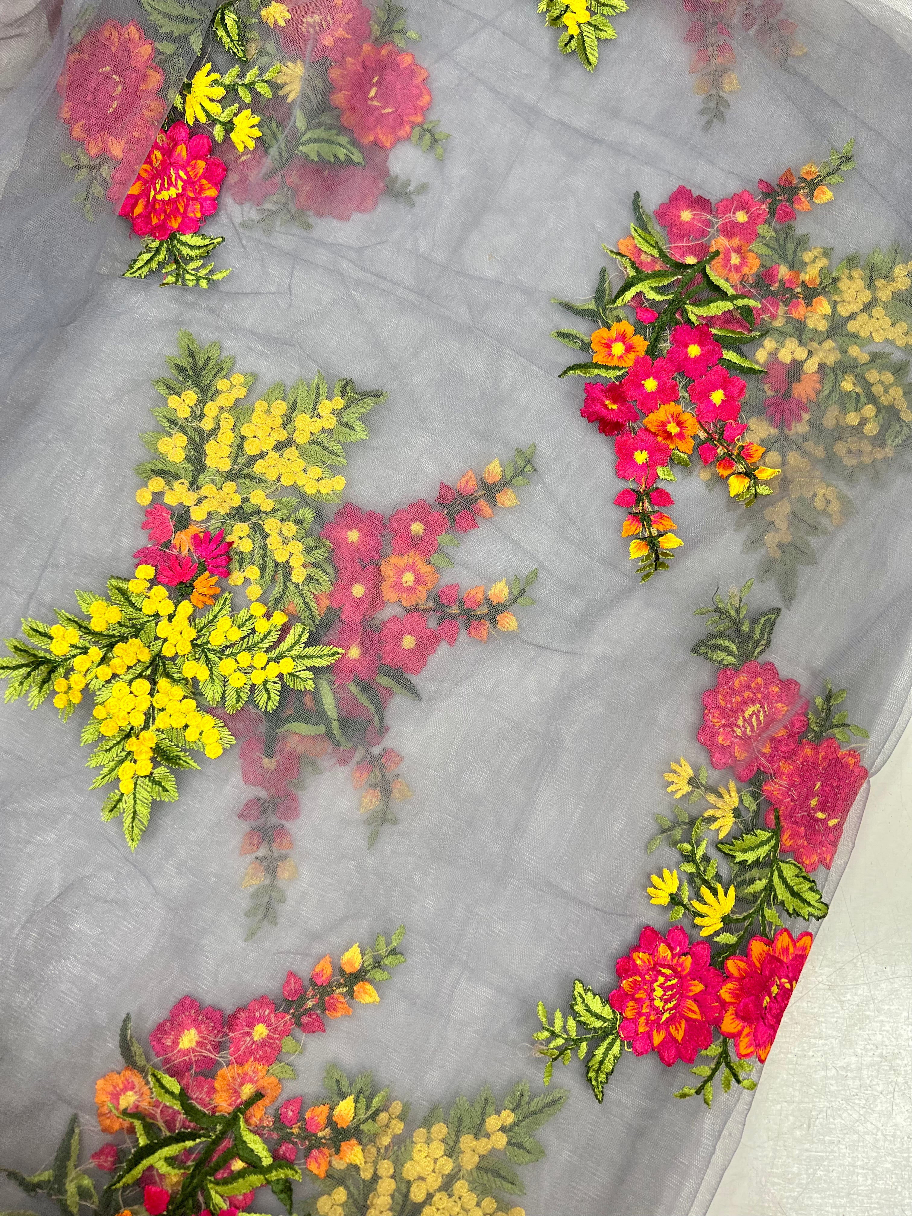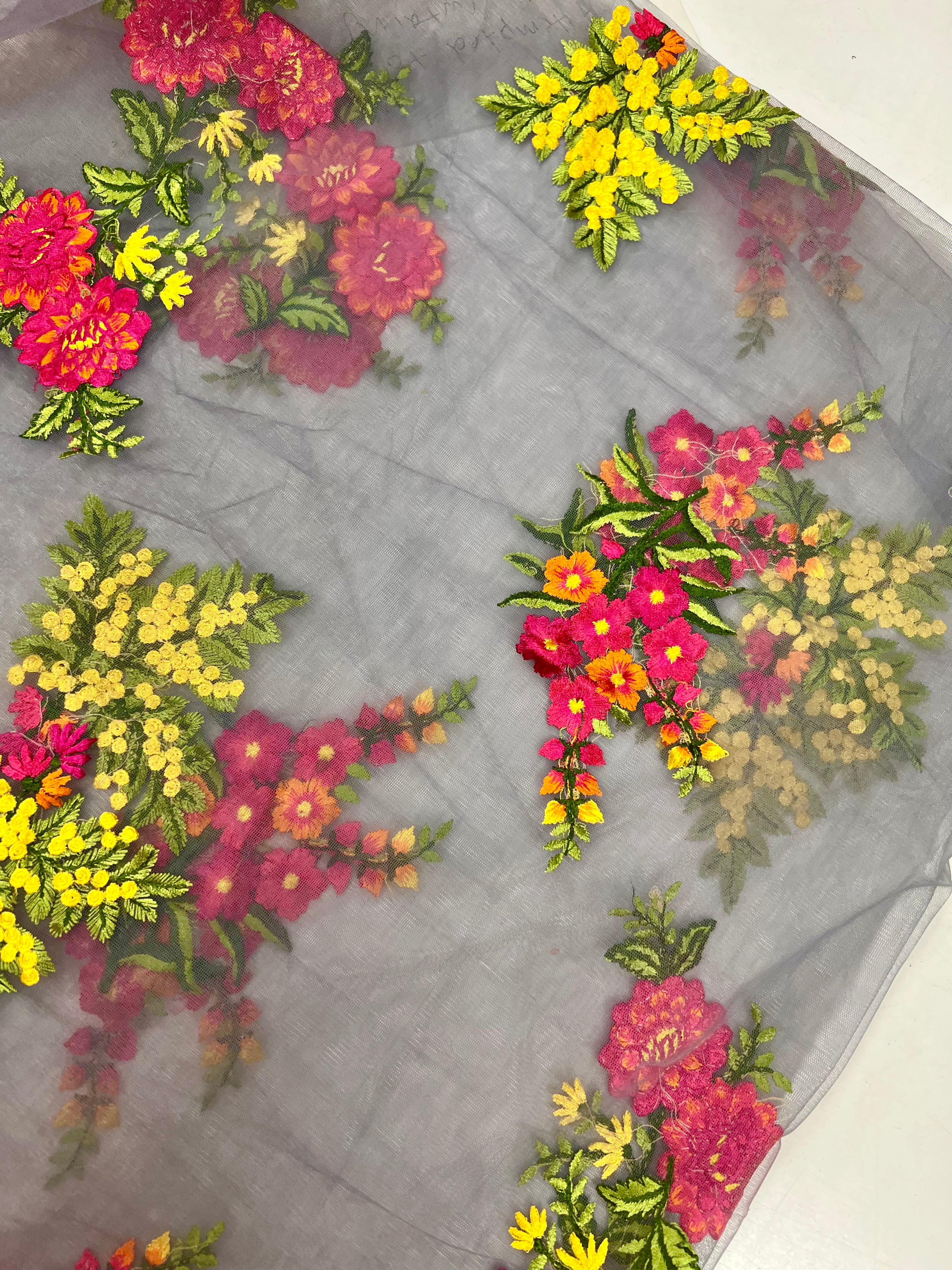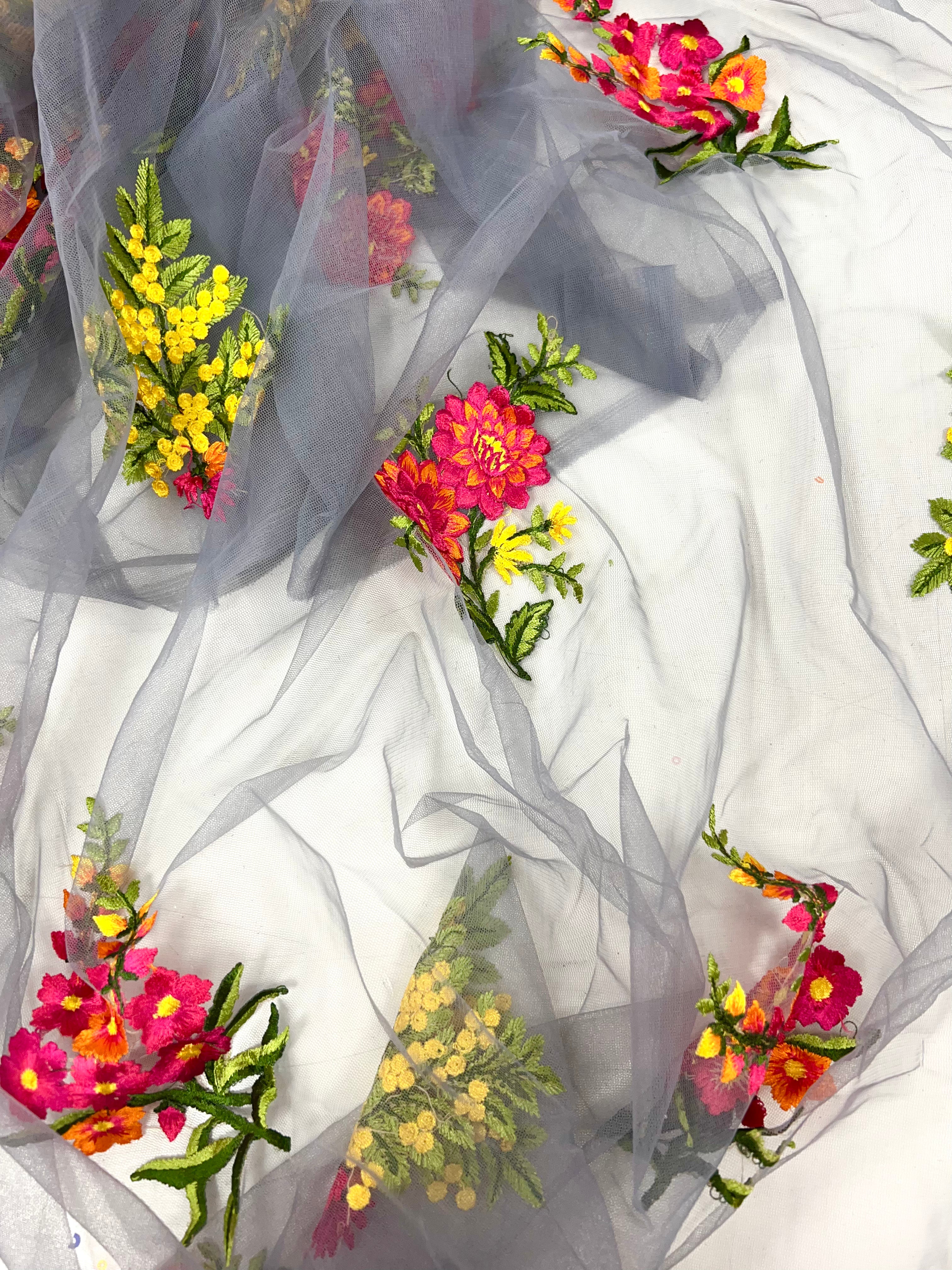 Fabric - Grey Mesh with Embroidered Floral Motifs ~ 210 x 100cm