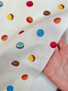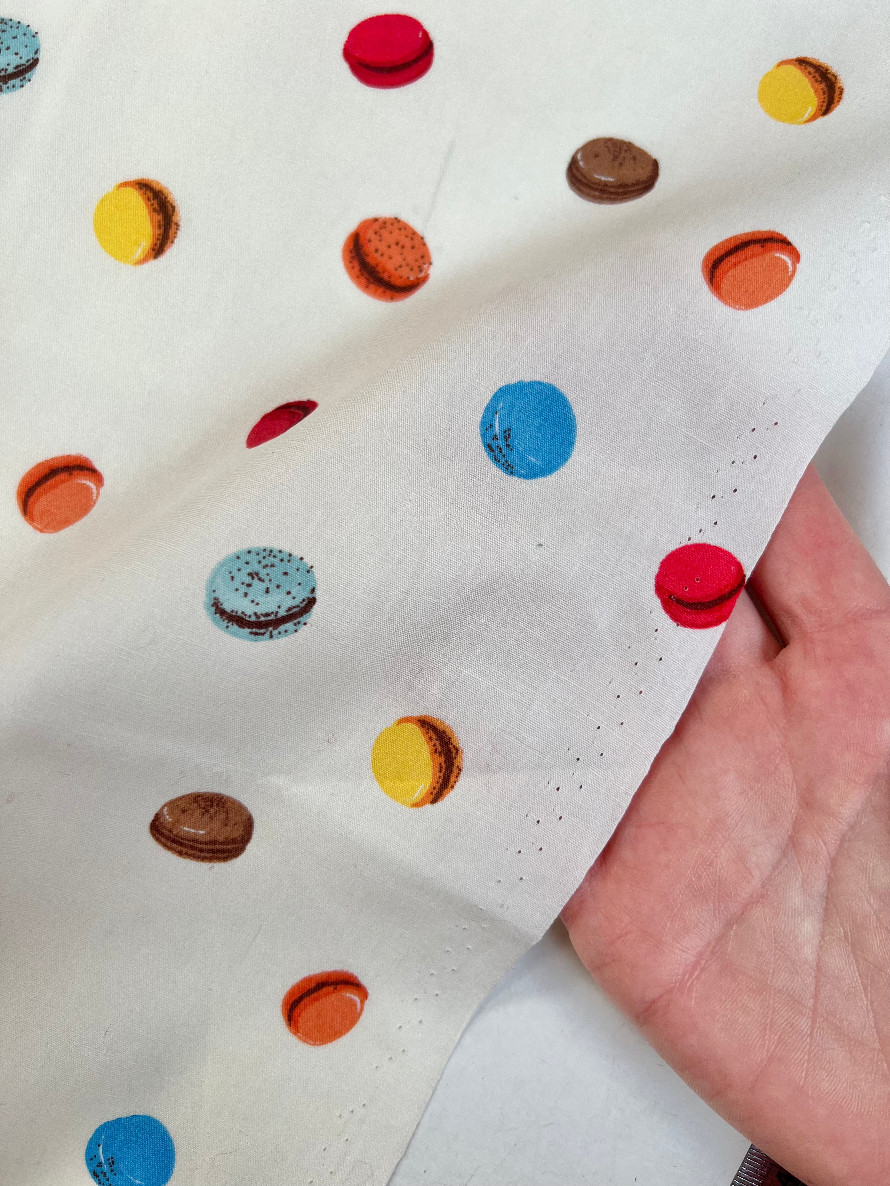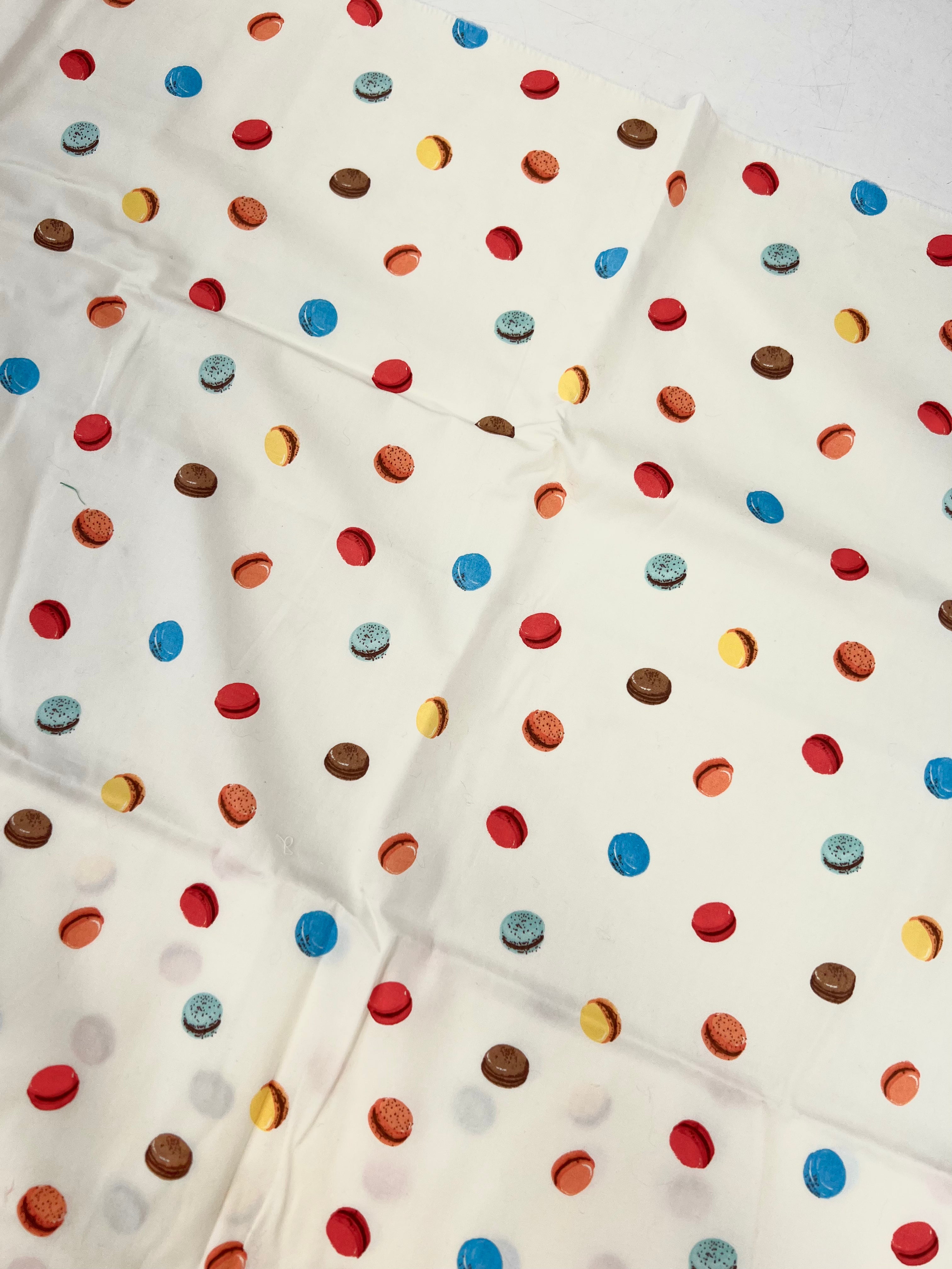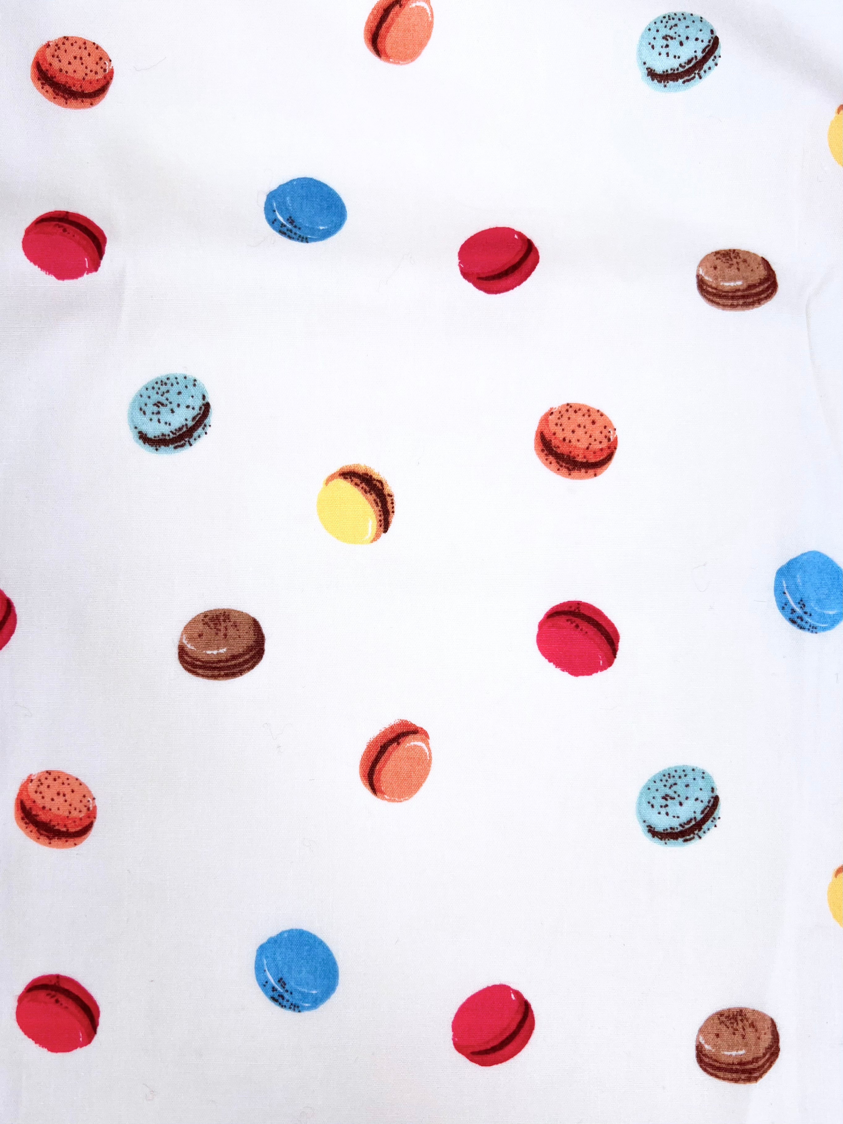 Fabric - White PolyCotton with Multicoloured Macaron / Macaroon Pattern ~ 300 x 110 cm