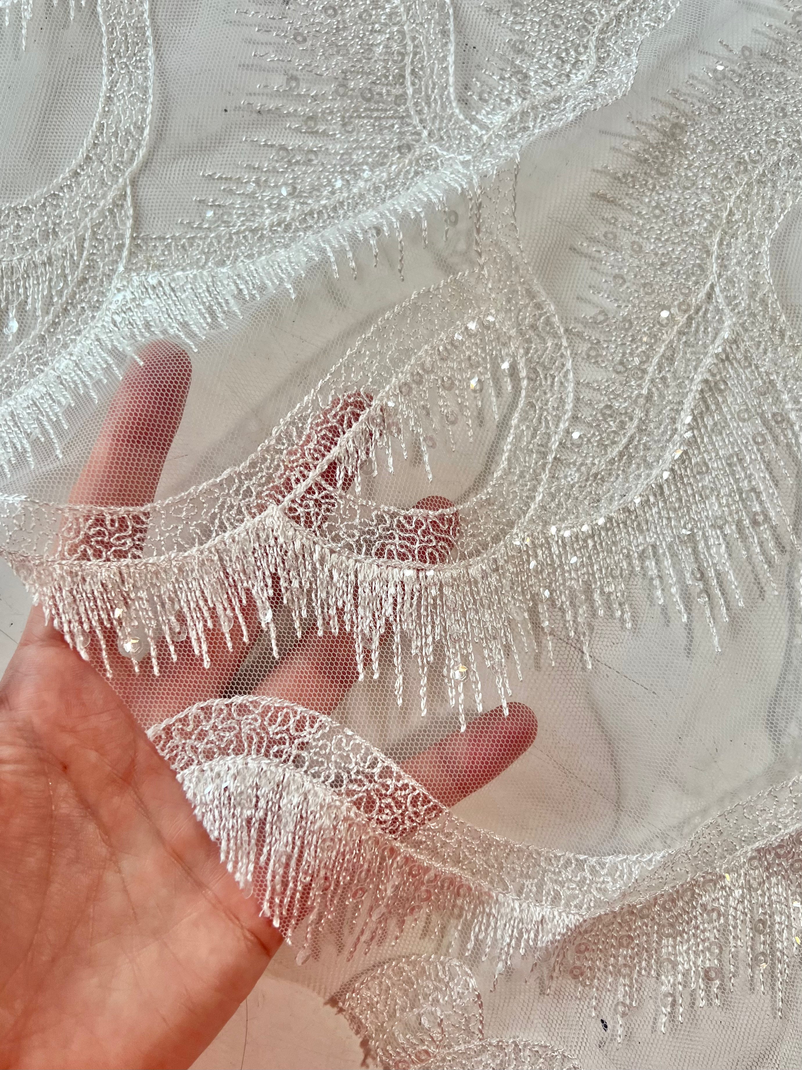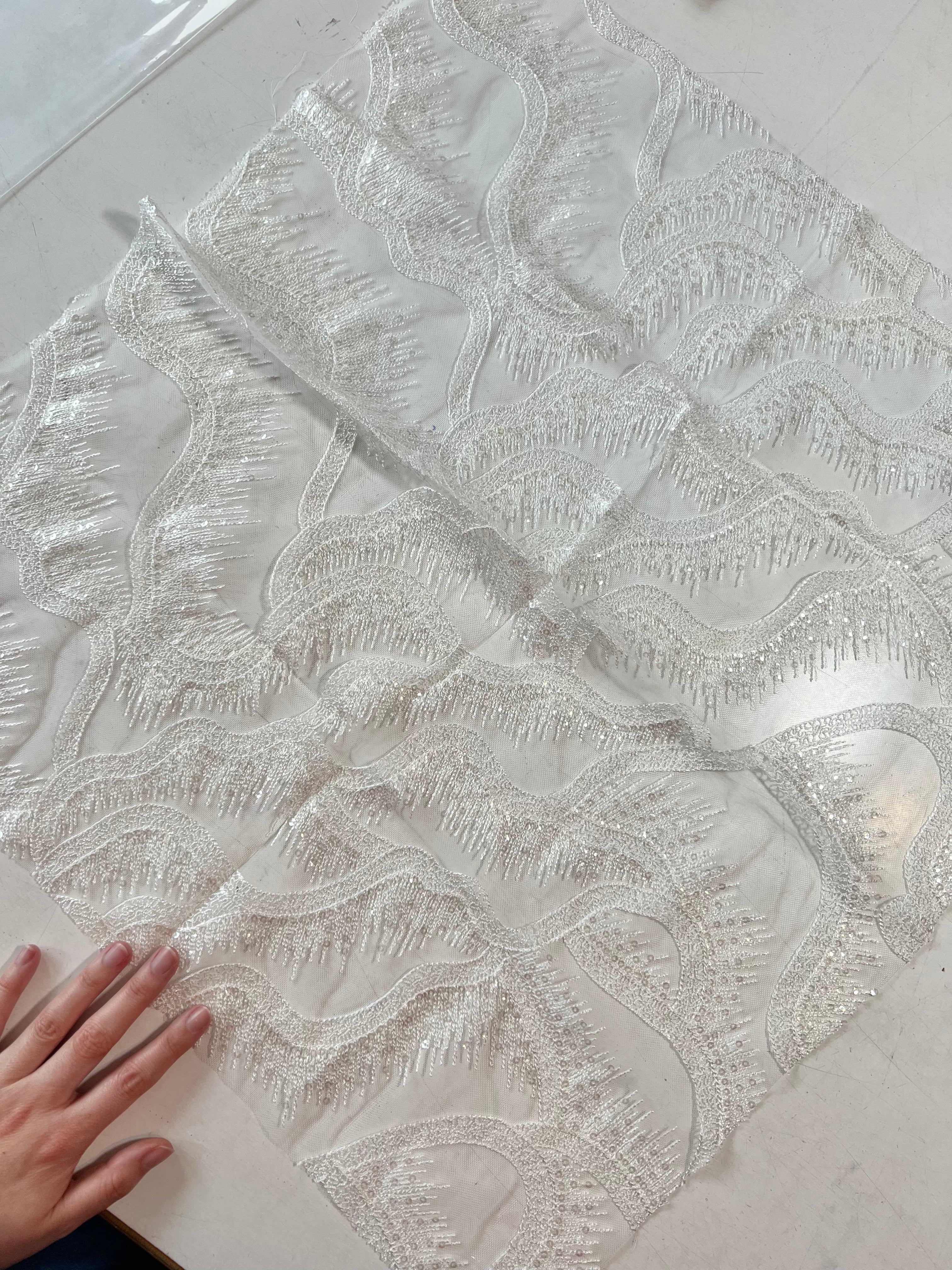 Stunning embroidered and clear sequinned piece of fabric. Enough for a small bodice or headdress/hat/veil.