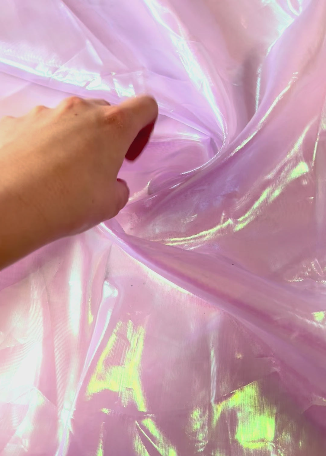 Panel of iridescent lavender sheer organza. Great for crafts, costumes, kids clothing.