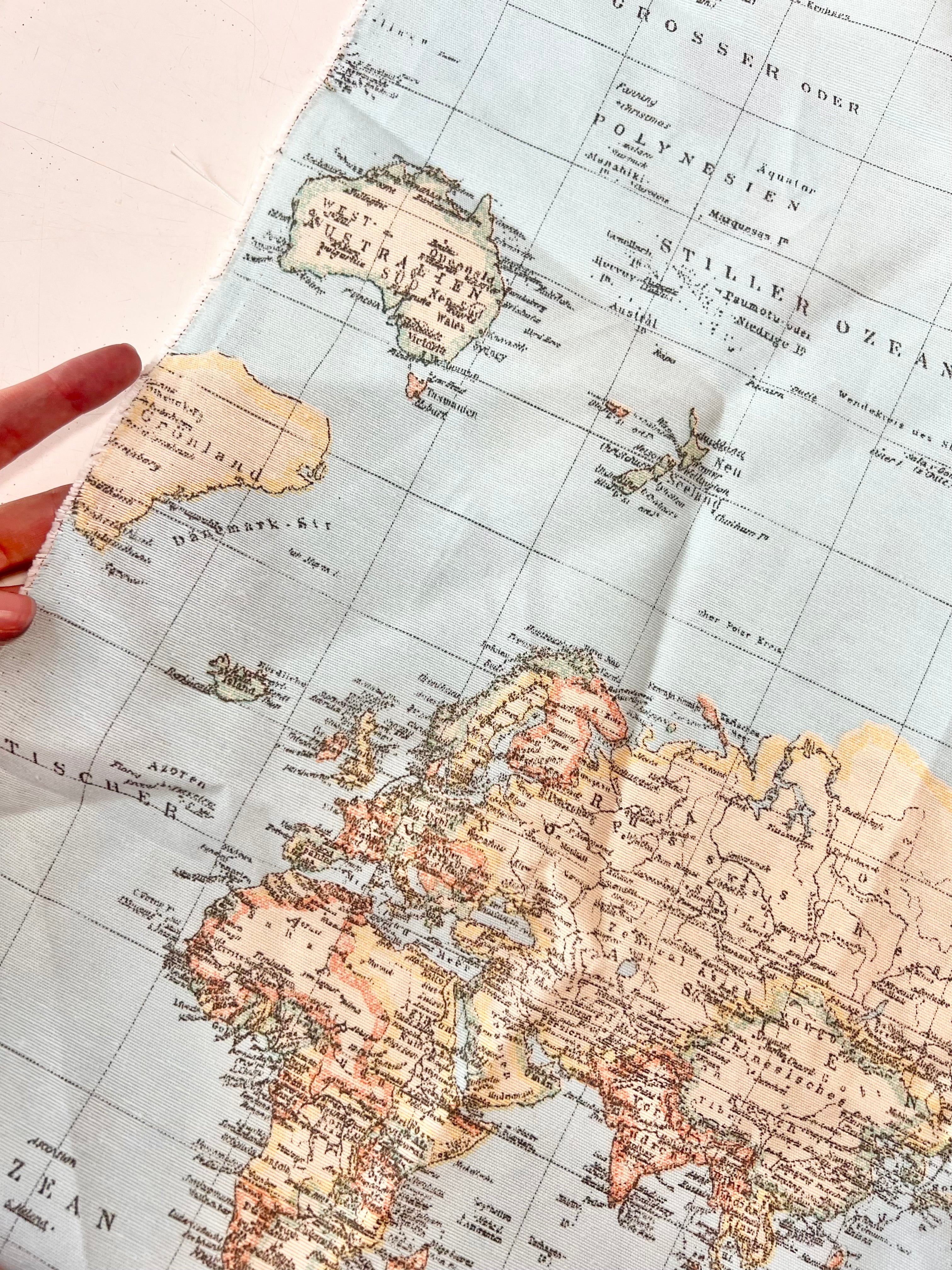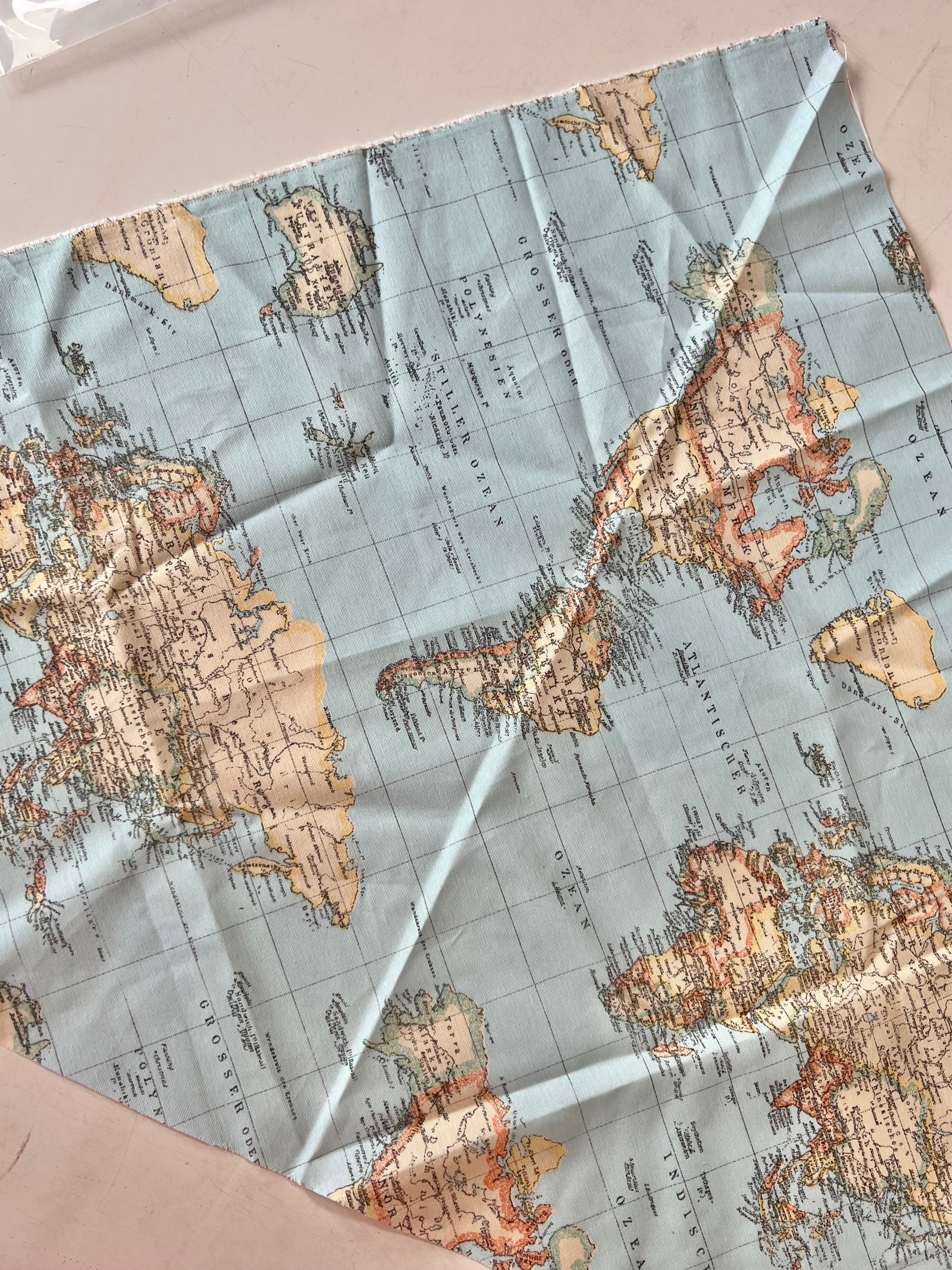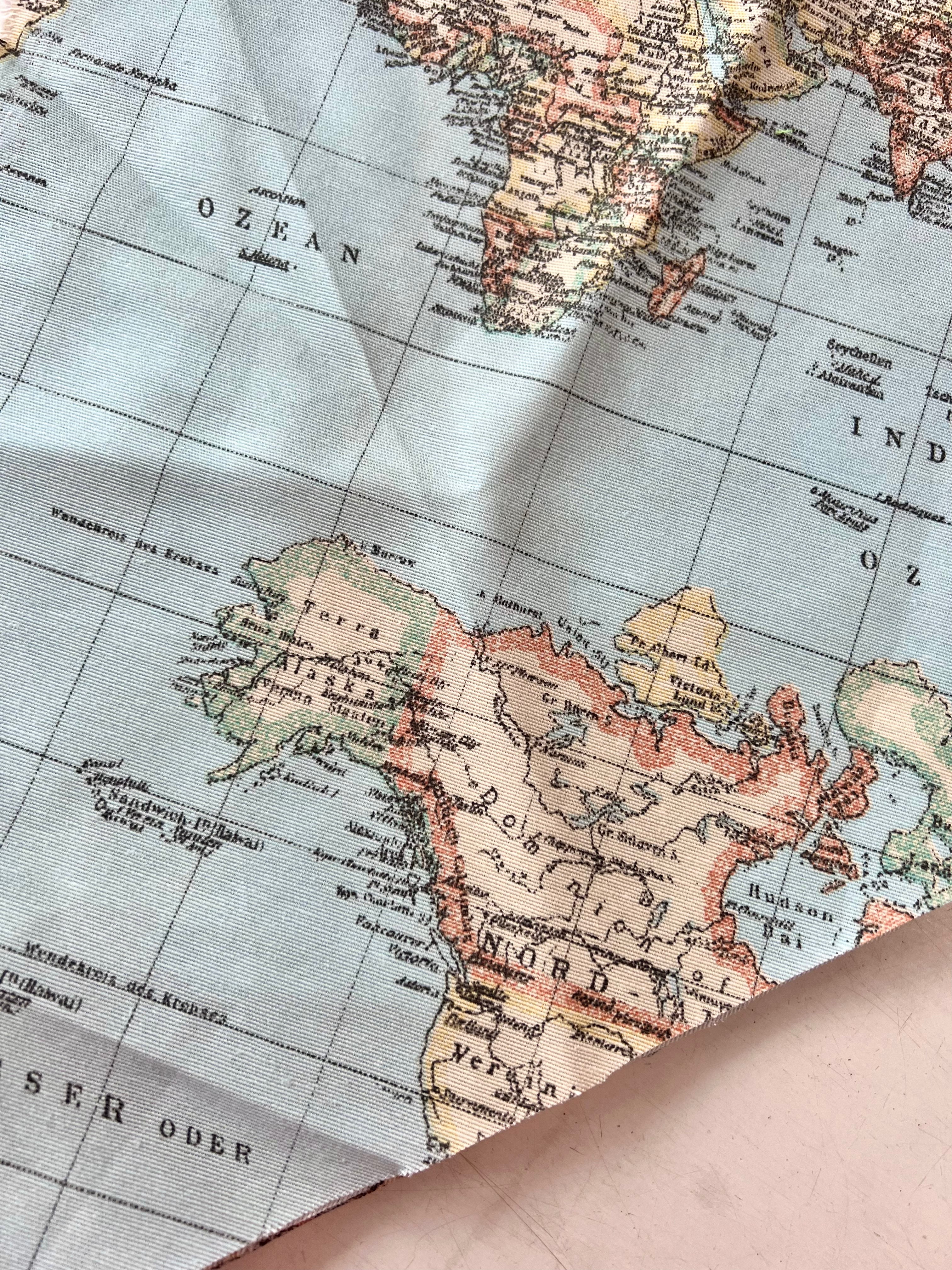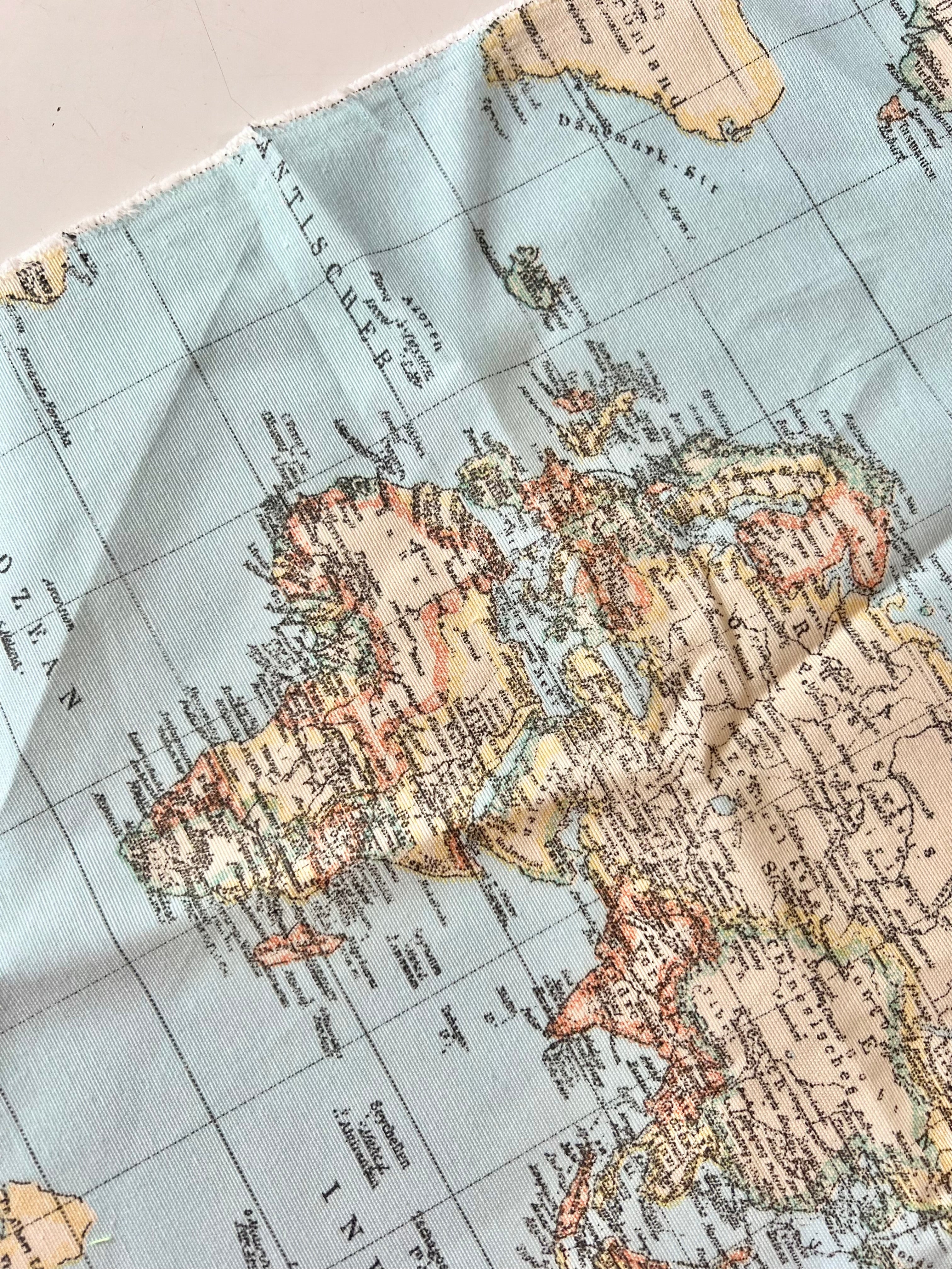 Awesome Map Fabric, printed onto a cotton canvas fabric. It is upholstry fabric, but I used for dressmaking and part of a pirate outfit.