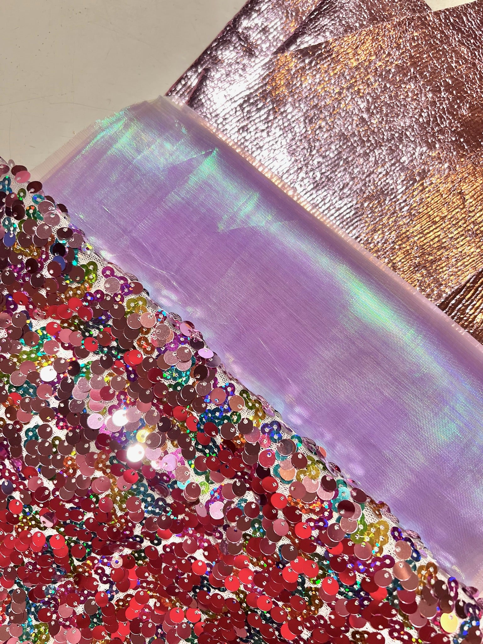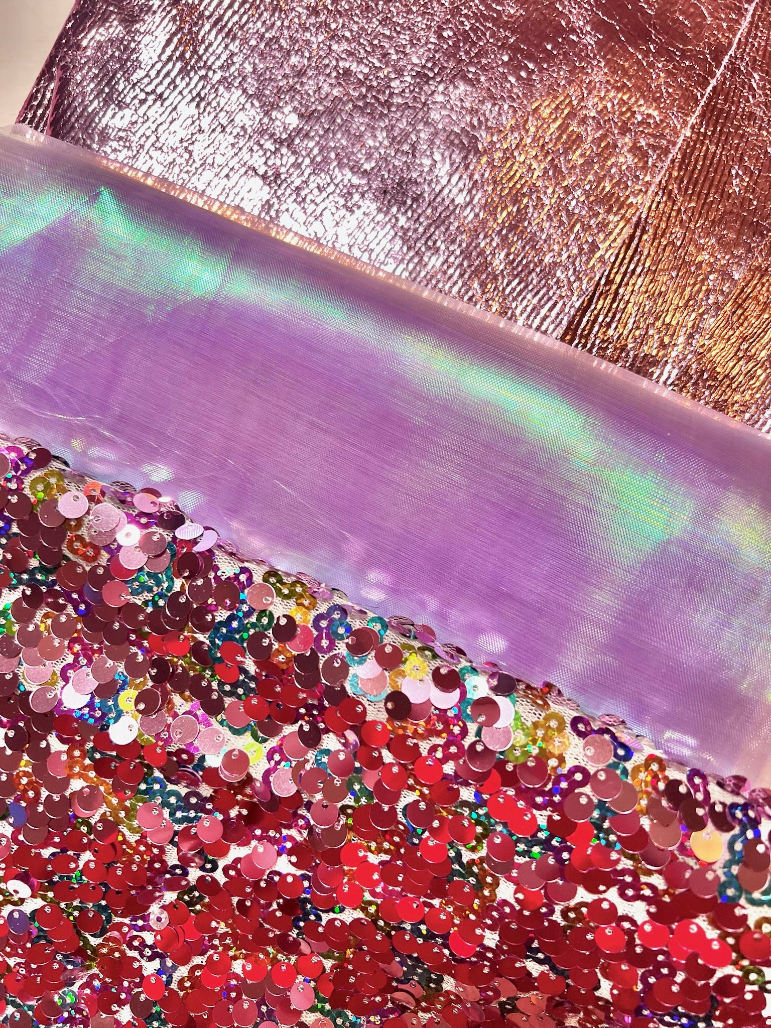 Three fabrics, small scraps, good for costumes, headdresses etc