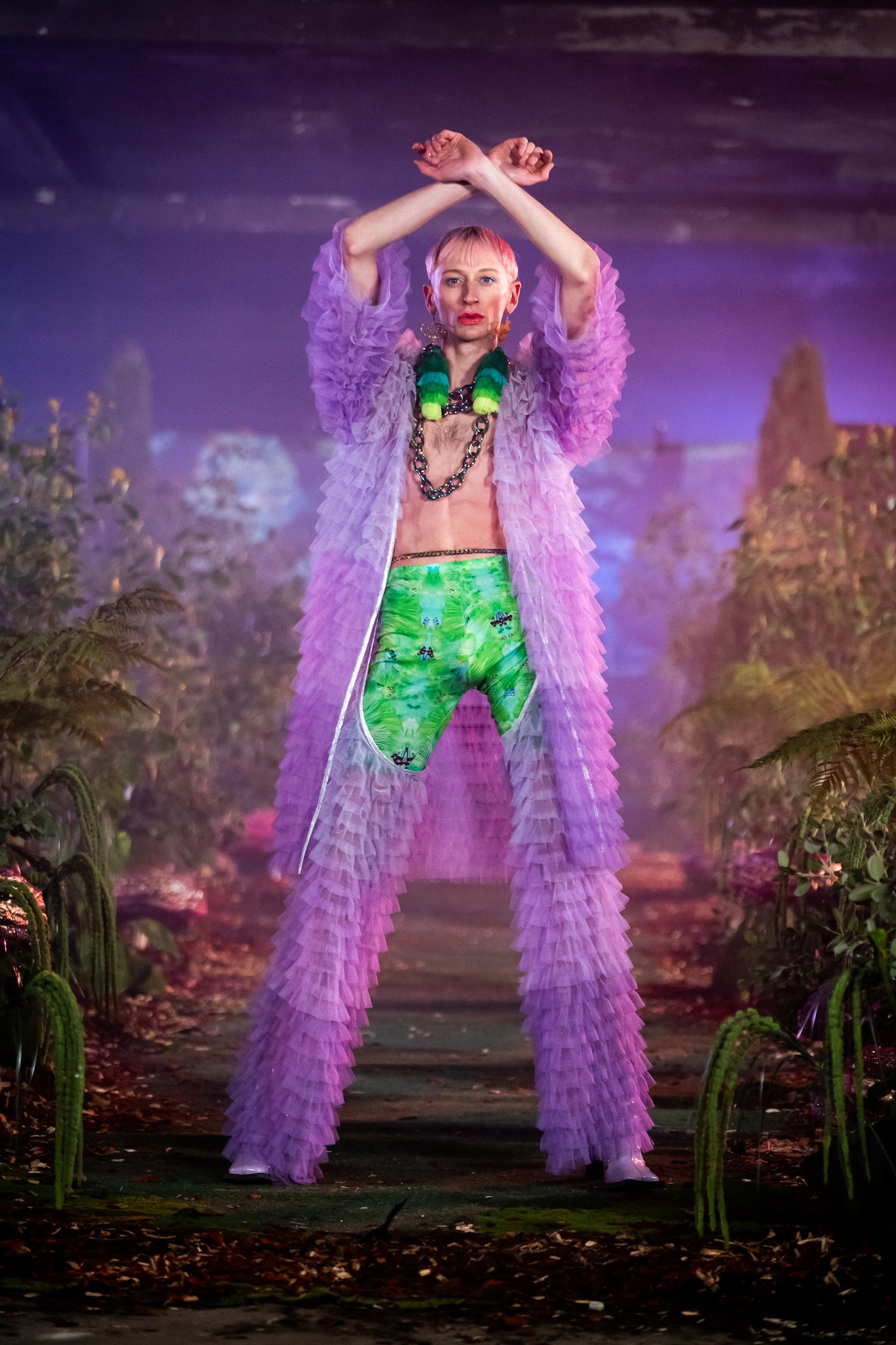Chaparreras transparentes de gasa en capas de color púrpura mágico, la incorporación más fabulosa a tu guardarropa de festival, de la entrega de la parte 3 de Forest of Dreams.
