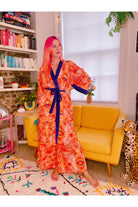 Exquisita bata de la colección naranja Bosque de los Sueños. Cuelga maravillosamente sobre tus hombros y se ata a la cintura para darle definición. Esta es realmente una declaración y una pieza increíblemente versátil. Úselo para descansar o hacer ejercicio en la casa, como protección solar durante las vacaciones, perfecto para una cita para almorzar y, por supuesto, incluso en el campo del festival.