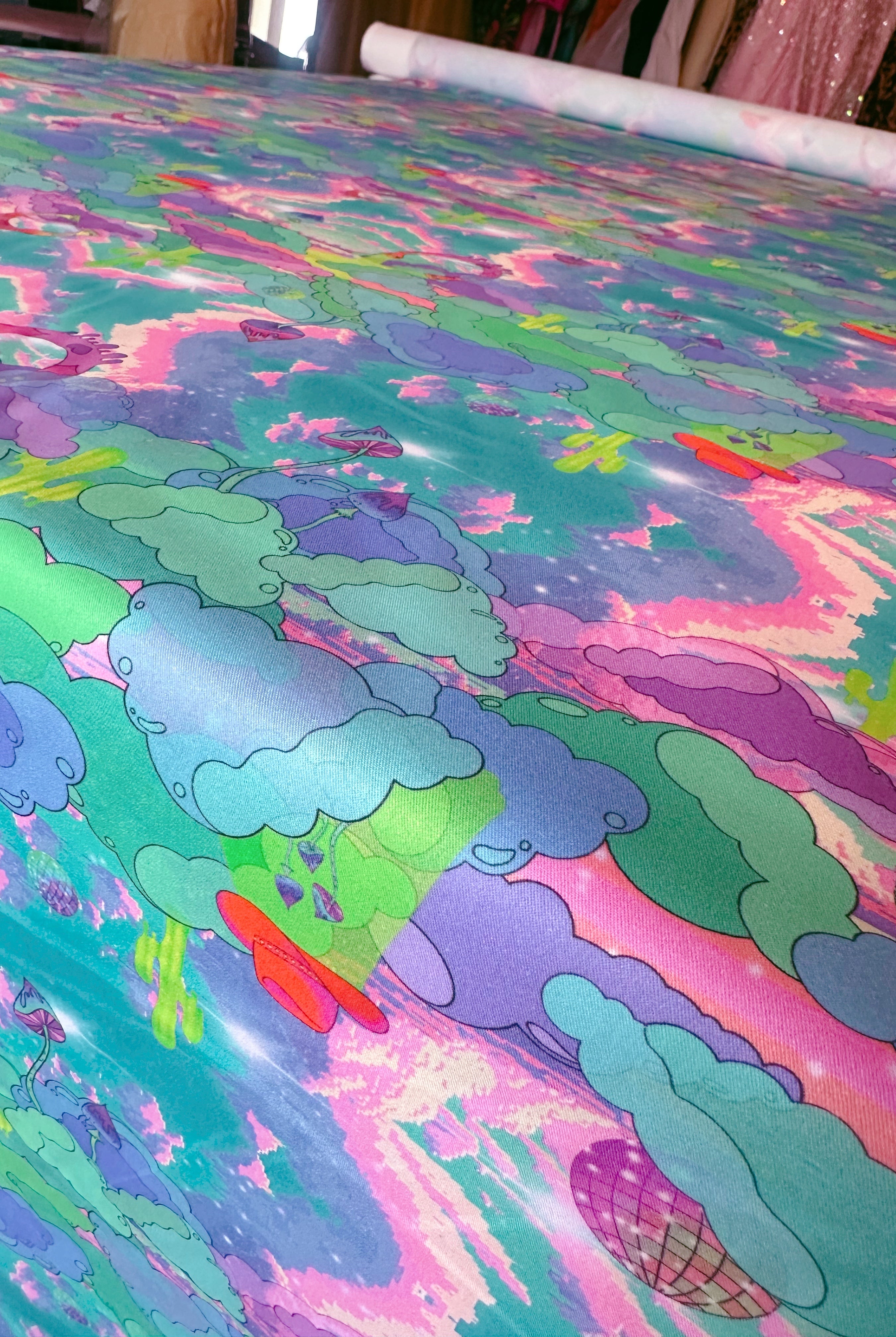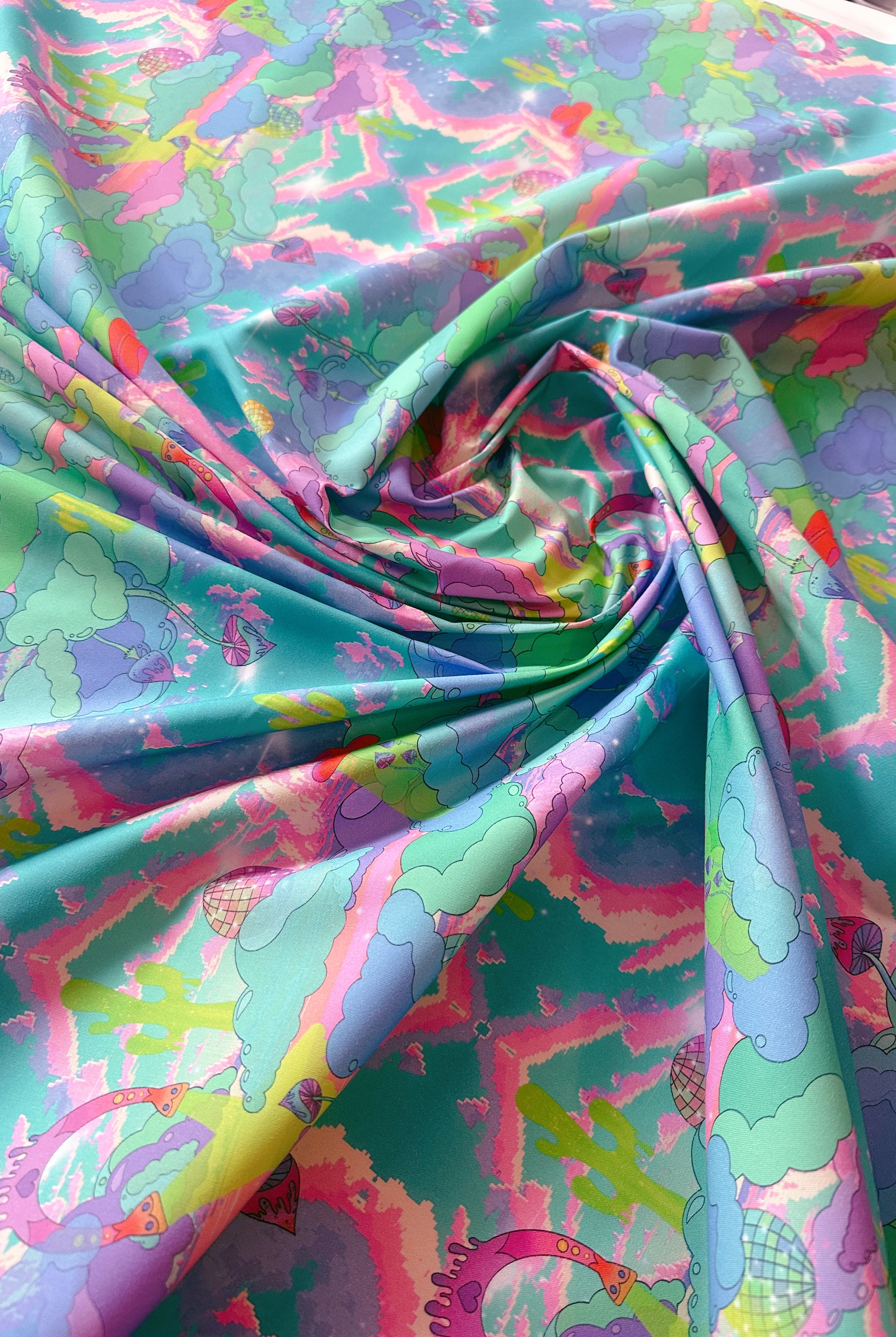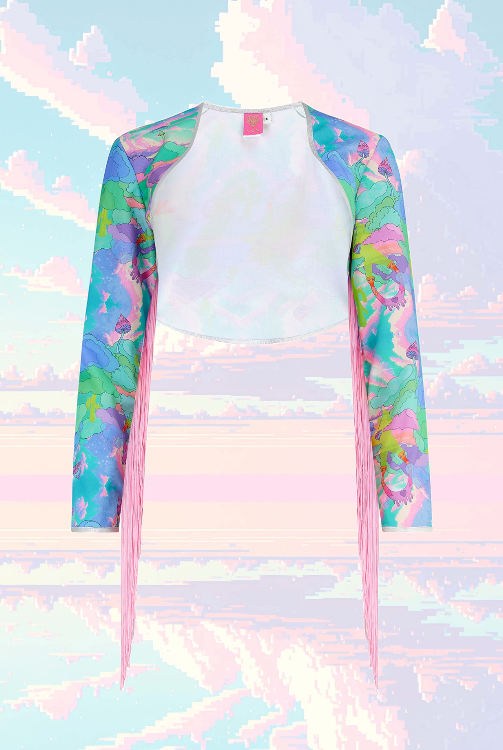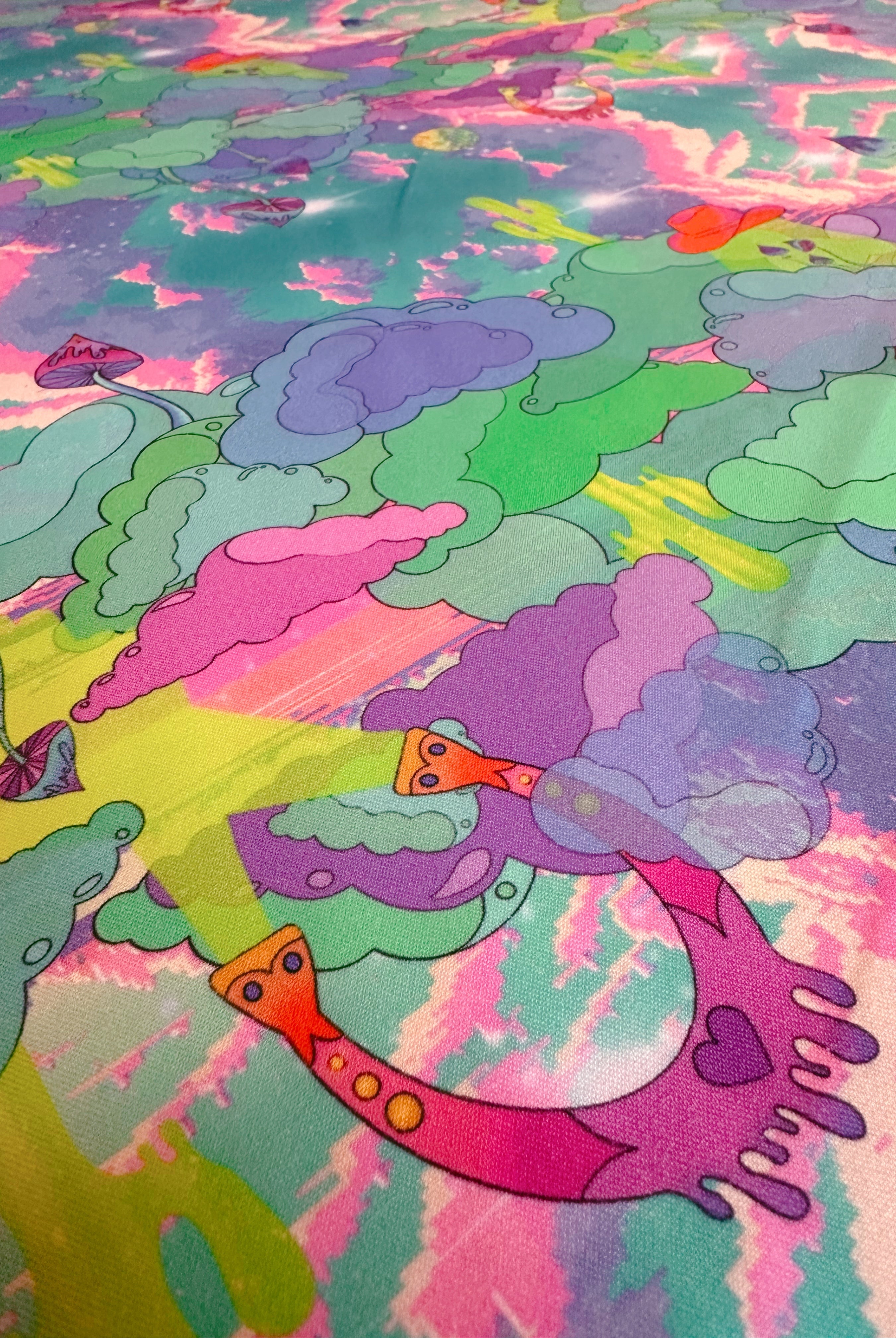 Con un diseño de impresión inspirado en carteles psicodélicos de la década de 1970, horizontes distorsionados y escenas de películas de vaqueros, puedes ver cactus derritiéndose, herraduras voladoras y ovnis con sombrero de vaquero lanzando hongos mágicos al espacio exterior.