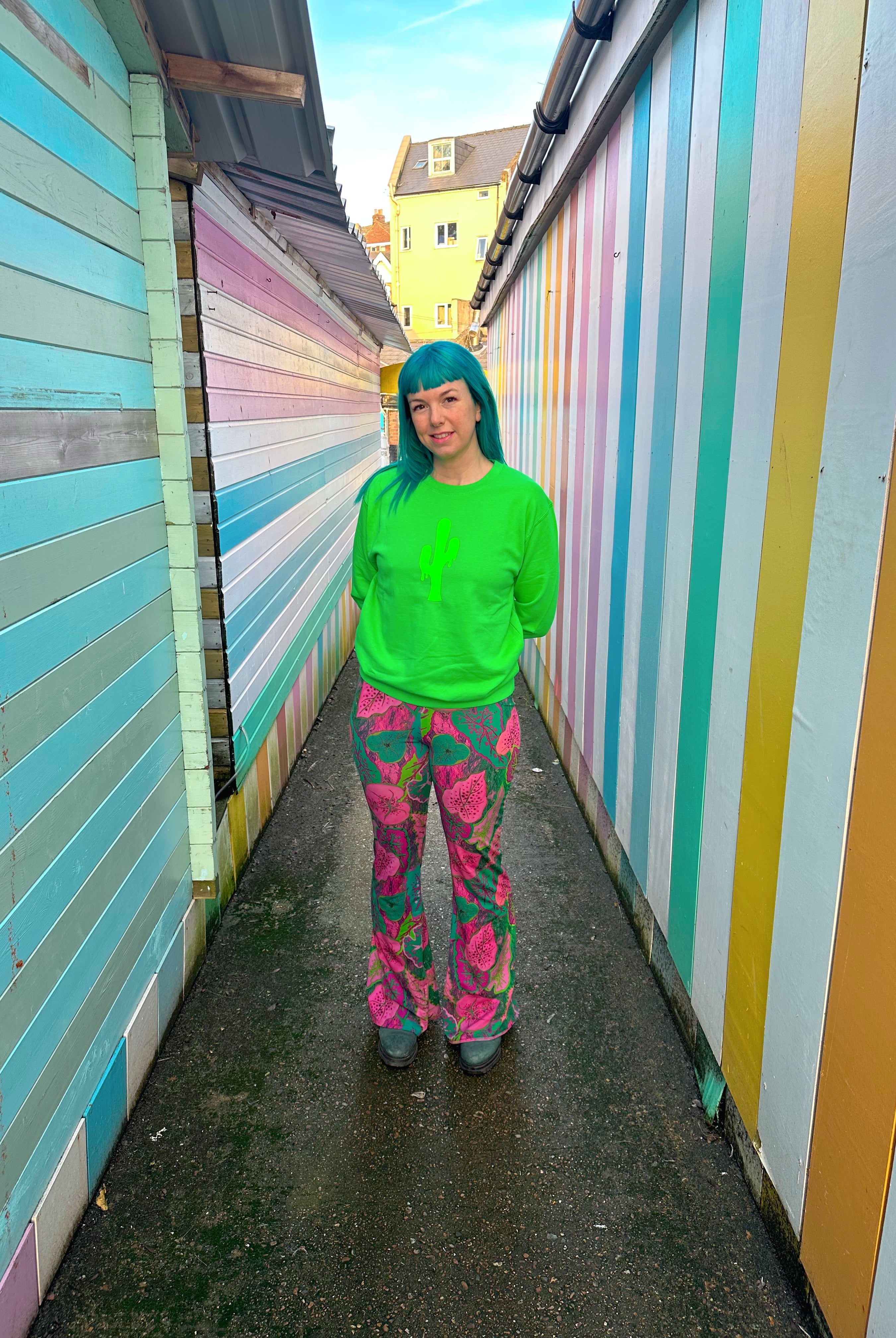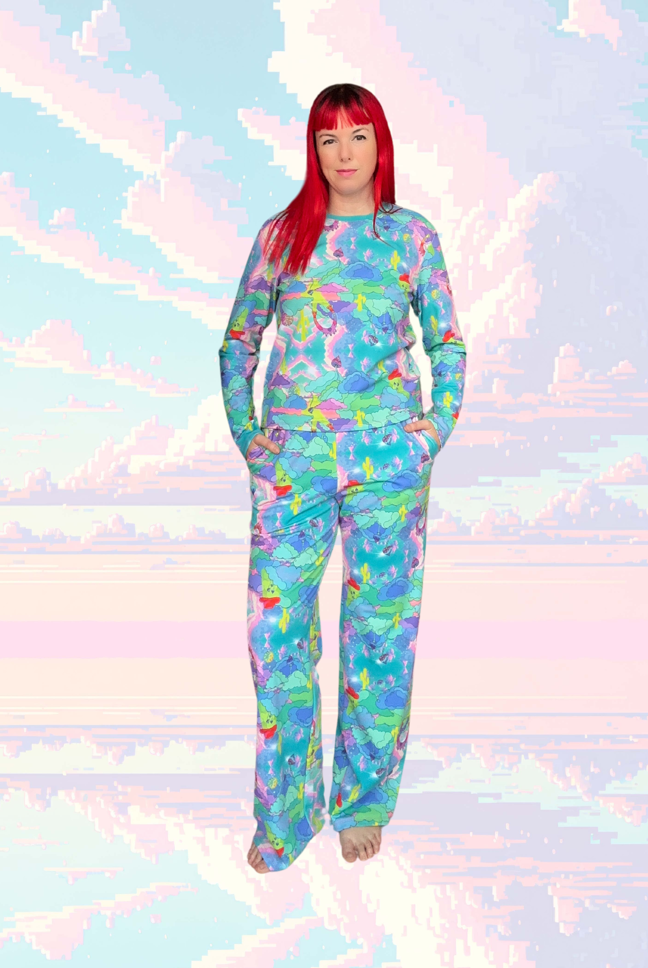 This winter, L.O.M Fashion presents a new capsule collection featuring our beloved Dolomiti jersey fabric—now in two fresh prints: Cala Elysium and Intergalactic Rodeo. Known for its premium quality, this fabric offers vibrant color, incredible shape retention, and a cozy fleece lining. The collection includes three reimagined pieces: a refined sweater with a streamlined cut that skims the hips, stylish sweatpants with a flattering wide-leg and smooth elastic waistband, and a cozy knee-length turtleneck dress with extra-long sleeves for added warmth. Each piece is handcrafted in our Brighton studio, blending comfort and sophistication for winter days, workwear, and festival style alike.