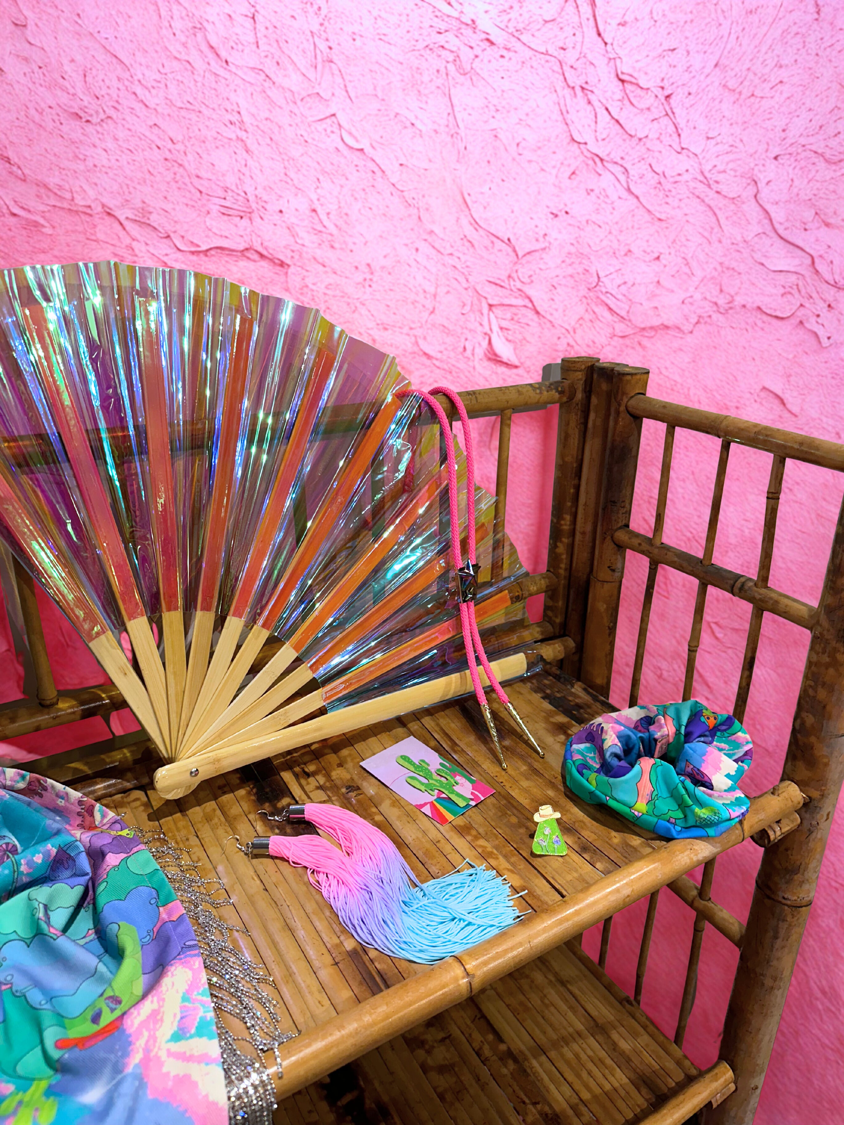 Abróchese el cinturón para nuestra colección Intergalactic Rodeo: los tonos iridiscentes acompañan a nuestras nuevas piezas inspiradas en el rodeo, que incluyen chaparreras, pañuelos forrados con diamantes y fundas para abanicos, entre las nuevas incorporaciones. ¡Hay más flecos decorativos de los que puedas imaginar y una variedad de piezas literalmente tachonadas de estrellas que te transportarán al cosmos!