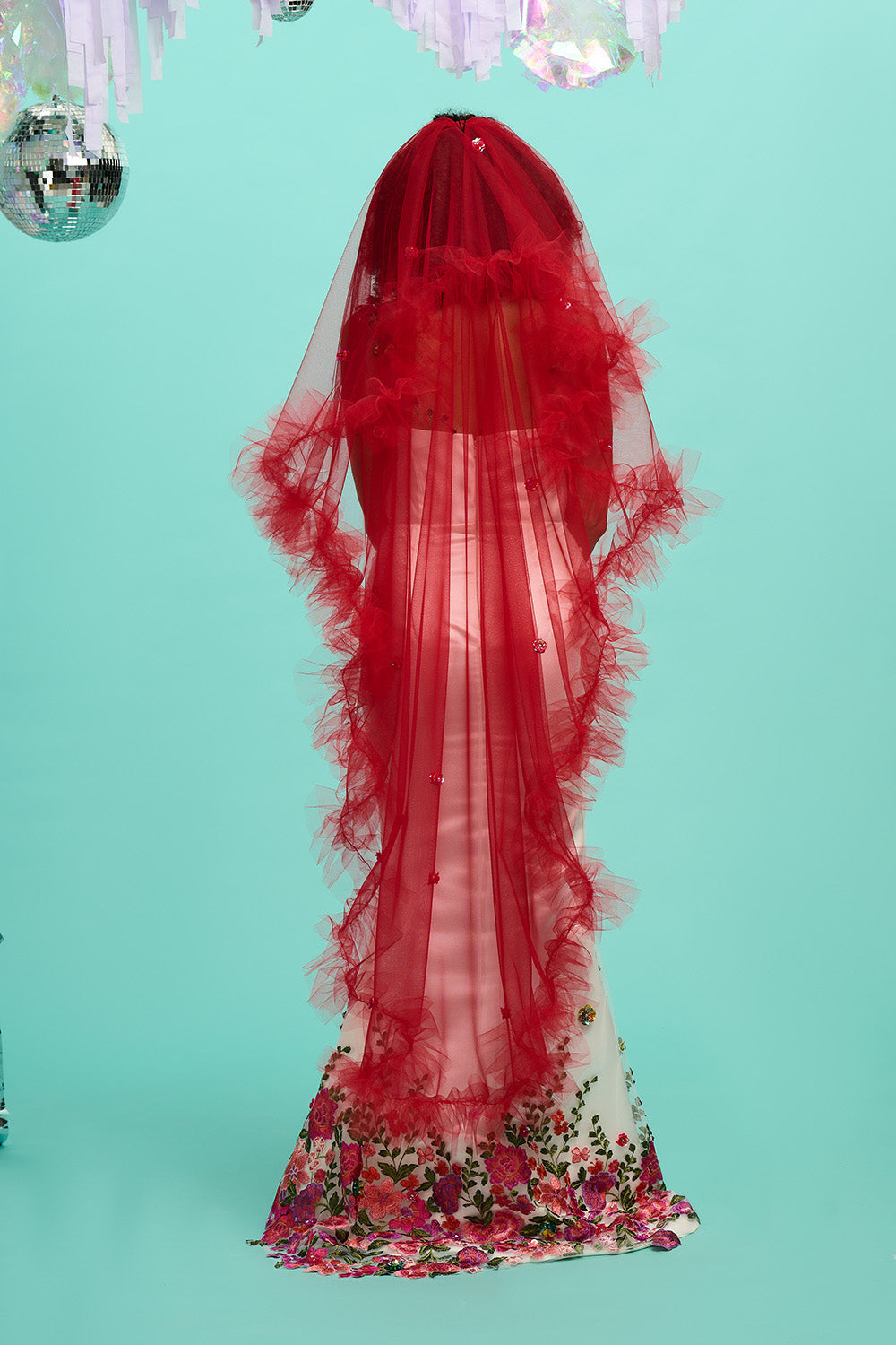 I absolutely love this show stopping veil! In the words of Noizu - “It's giving Madonna, vogue. It's giving life goals. It's giving Mariah, diva. It's giving rainbow era. It's giving queen, Gaga, it’s giving iconic drama!”