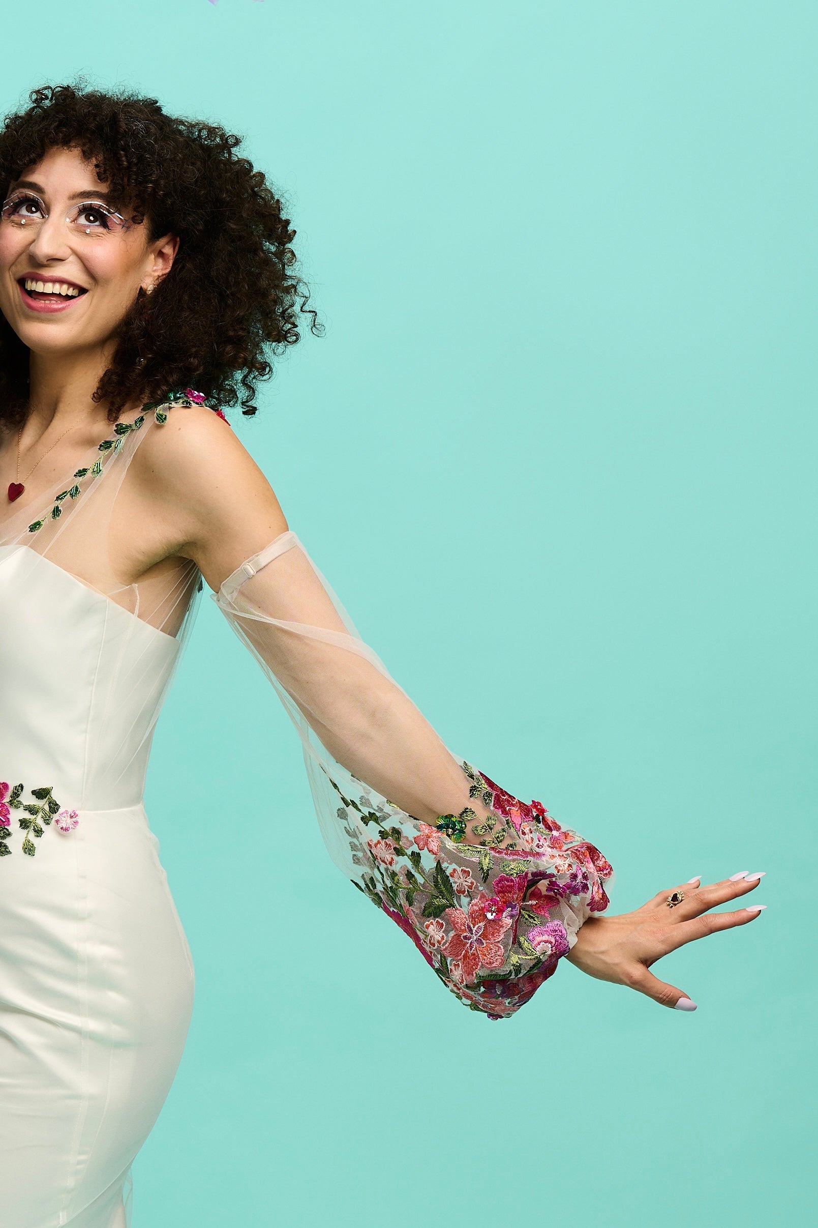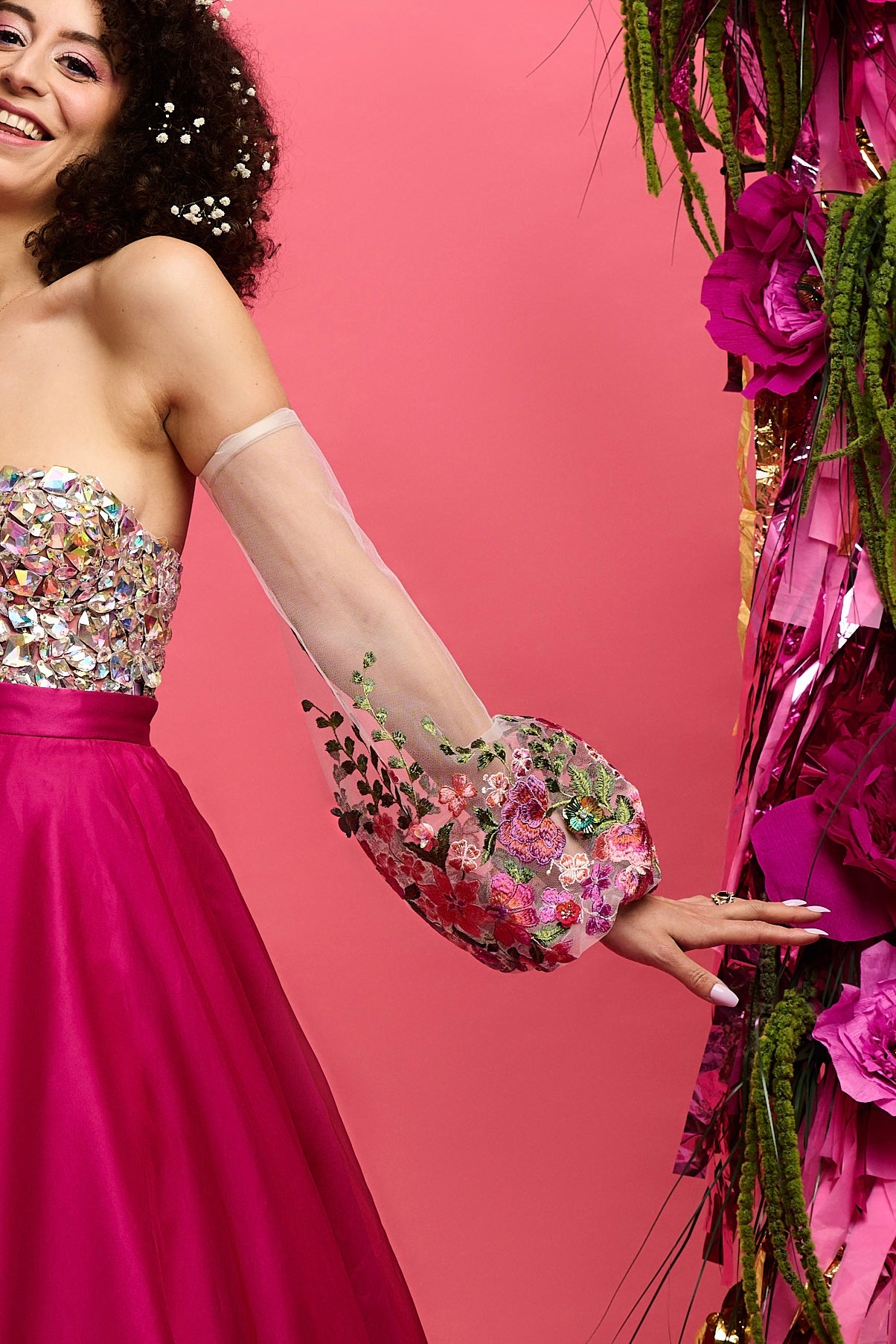 Crafted with attention to detail, the Willow sleeves feature elastic at the arm and cuff, creating a charming balloon shape that adds a playful flair to your outfit. For added convenience, we include a snap fastener that allows you to attach the sleeves to your dress effortlessly, ensuring a secure fit throughout your special day.