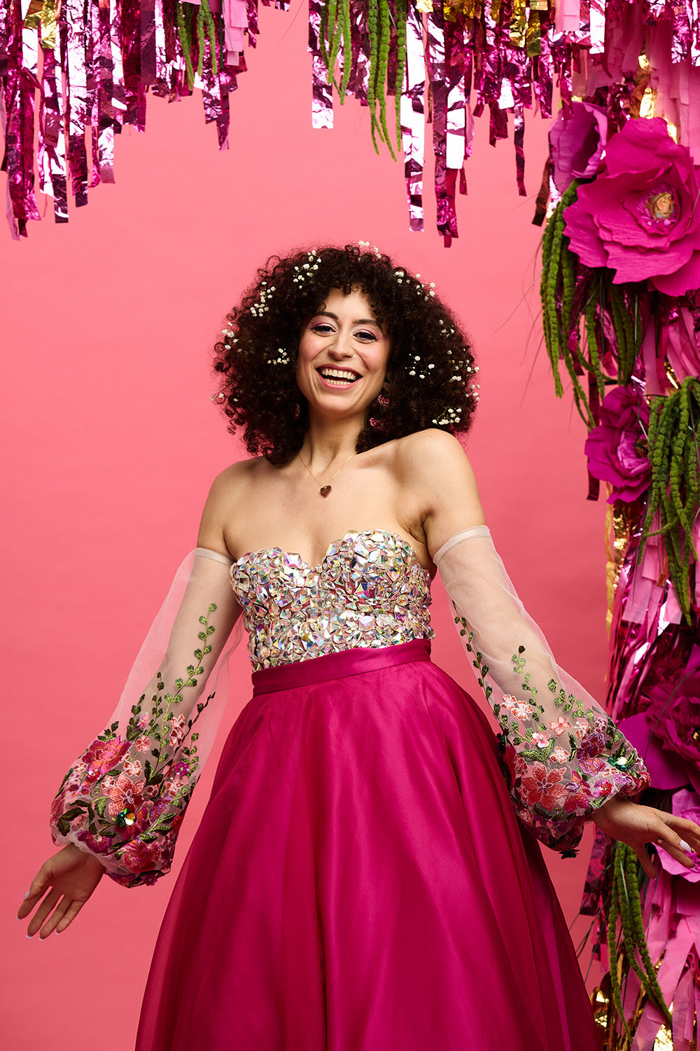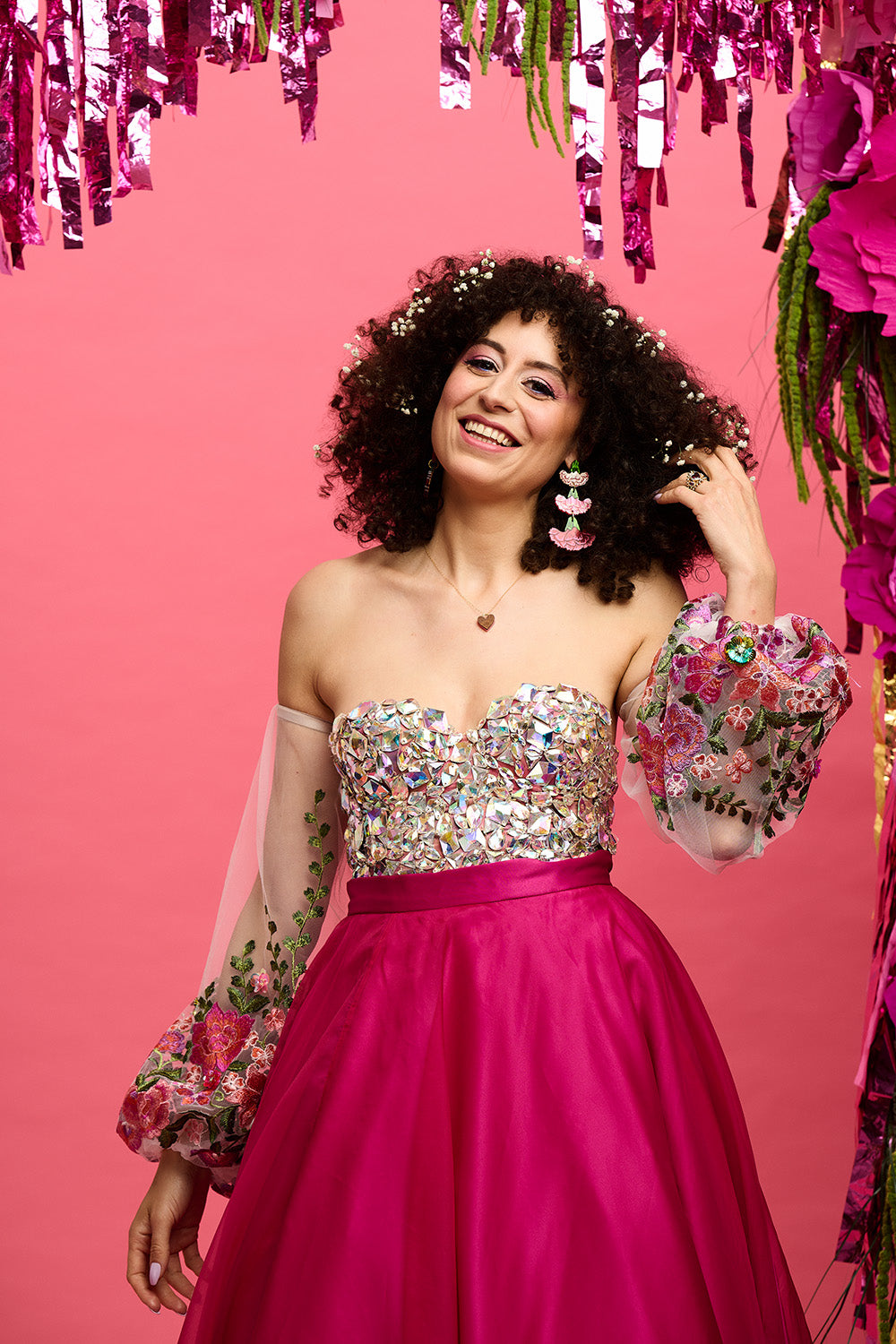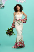 Photographed with with the Alex Dress featuring the same floral motifs and also with the Bellatrix Bodice and Peony Skirt