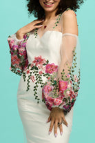 These sleeves are made with beautiful embroidered fabric covered in leaves and flowers, with the option to have sequin motifs hand sewn on.