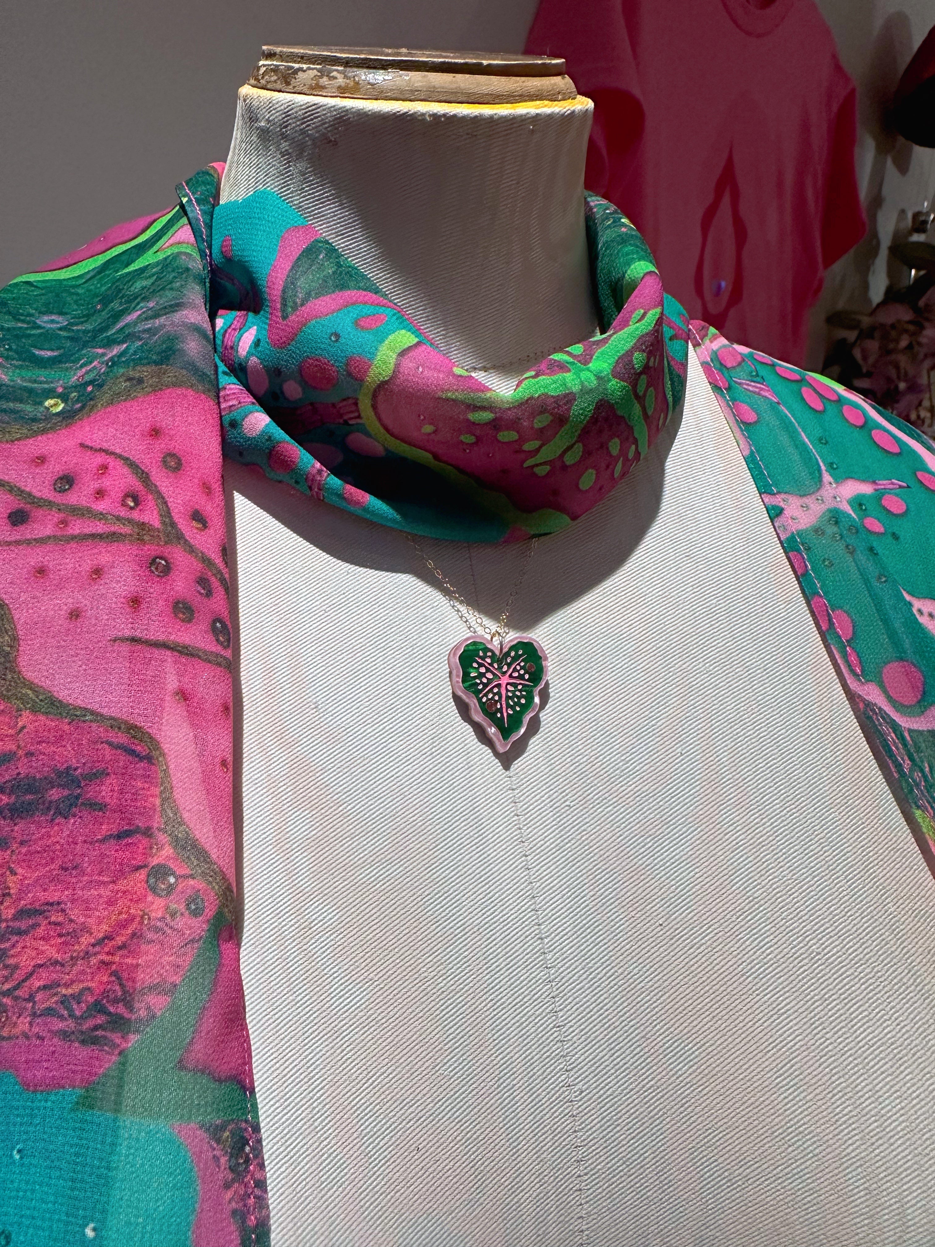 El pañuelo para la cabeza y el cuello Tribal Tales de LOM está confeccionado con un precioso crepé de China de seda y está estampado y confeccionado por expertos en Inglaterra.