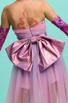 Crafted from stunning metallic pink fabric with an iridescent shine, this bow is guaranteed to steal the show no matter what kind of wedding look you're going for. From simple dresses to princess gowns, from stylish suits to hen party outfits, this bow adds a touch of glamour and drama to every outfit it graces.