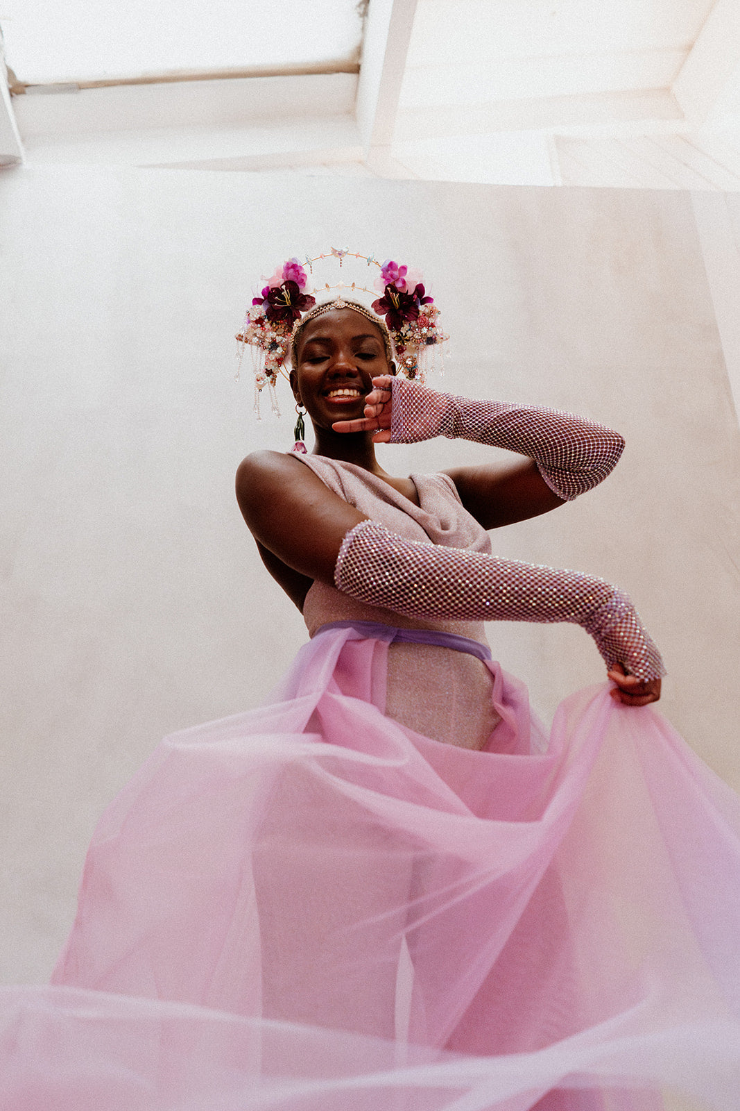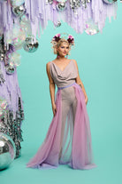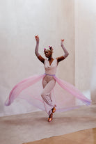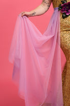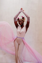 Crafted with care and precision, the tulle version of the Lily Overskirt boasts an impressive 13 meters of stunning dip dye tulle, meticulously draped to create a killer silhouette. Each detail is thoughtfully designed, including the soft scalloped edge hem that adds a touch of romance to its flowing shape.