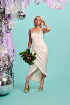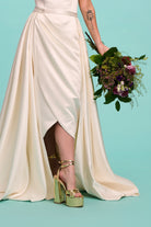 Crafted with buttery soft satin, the beautiful Verity dress was meticulously designed to flatter and stun. The wrap-around skirt gracefully drapes around your curves, offering both freedom of movement and an exquisite silhouette. Meanwhile, the bodice is expertly boned with a combination of plastic and spiral steel boning, ensuring it holds its shape while complementing yours.